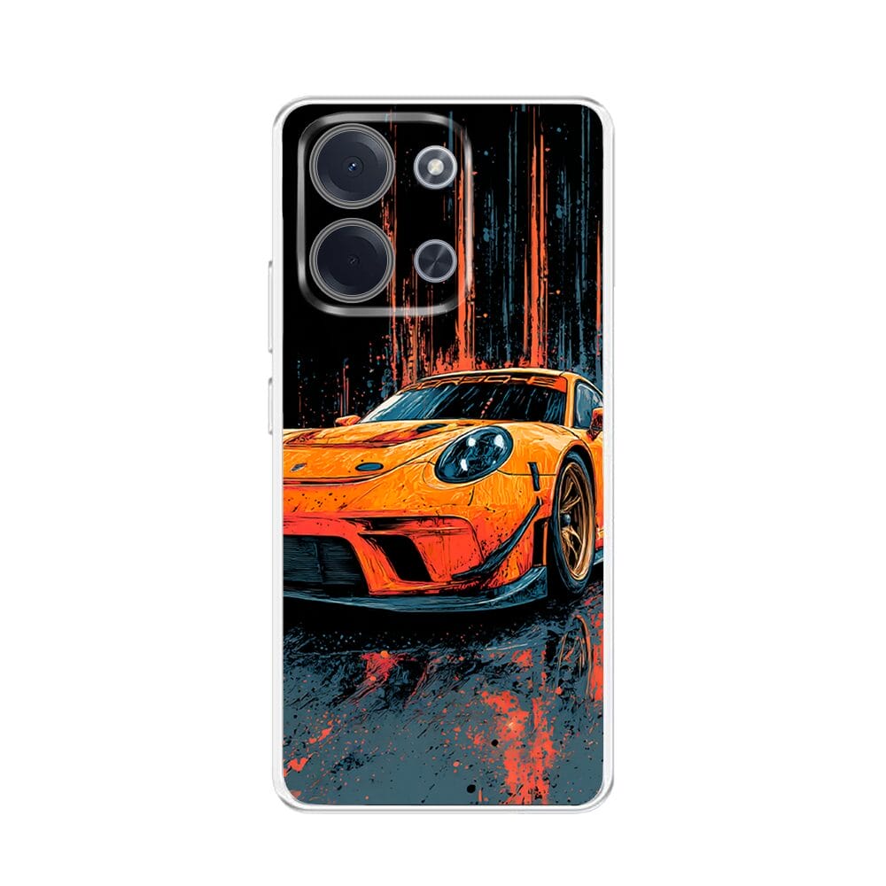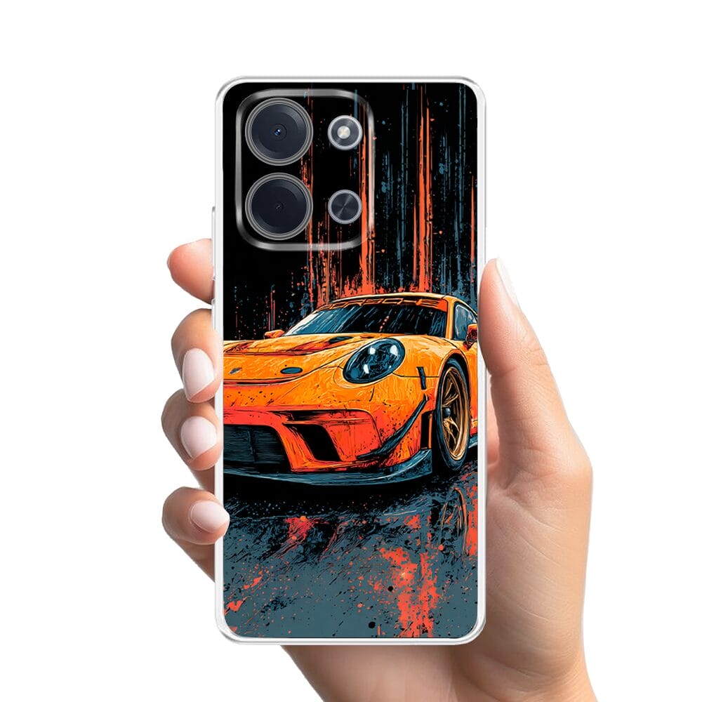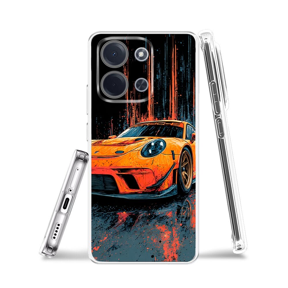 Etui do Xiaomi POCO C85 przeźroczyste, silikonowe Flexi, Szybkie Auta, Pomarańczowa 911