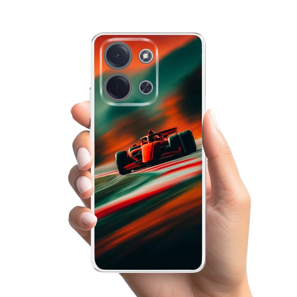 Etui do Xiaomi POCO C85 przeźroczyste, silikonowe Flexi, Szybkie Auta, Wyścig F1