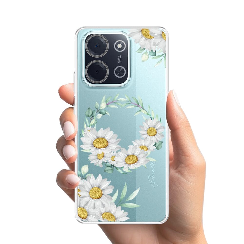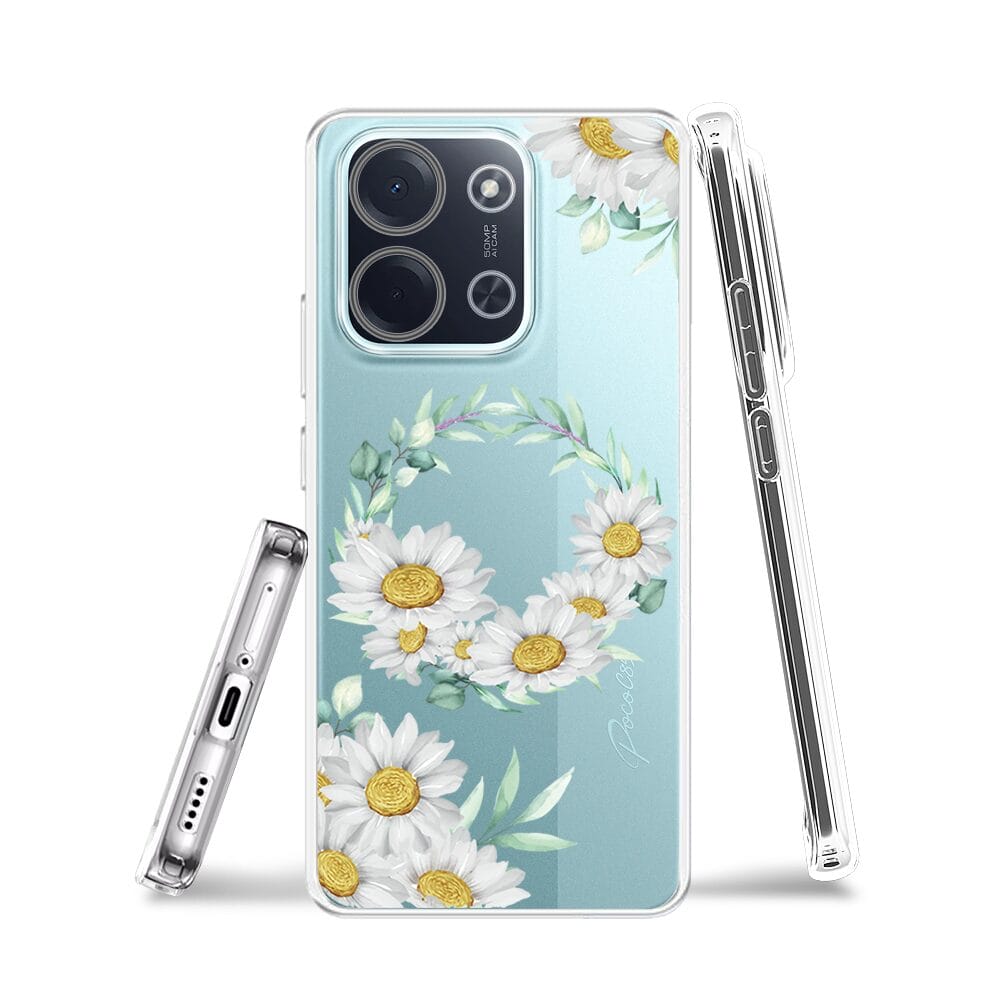 Etui do Xiaomi POCO C85 przeźroczyste, silikonowe Flexi, wianek stokrotek