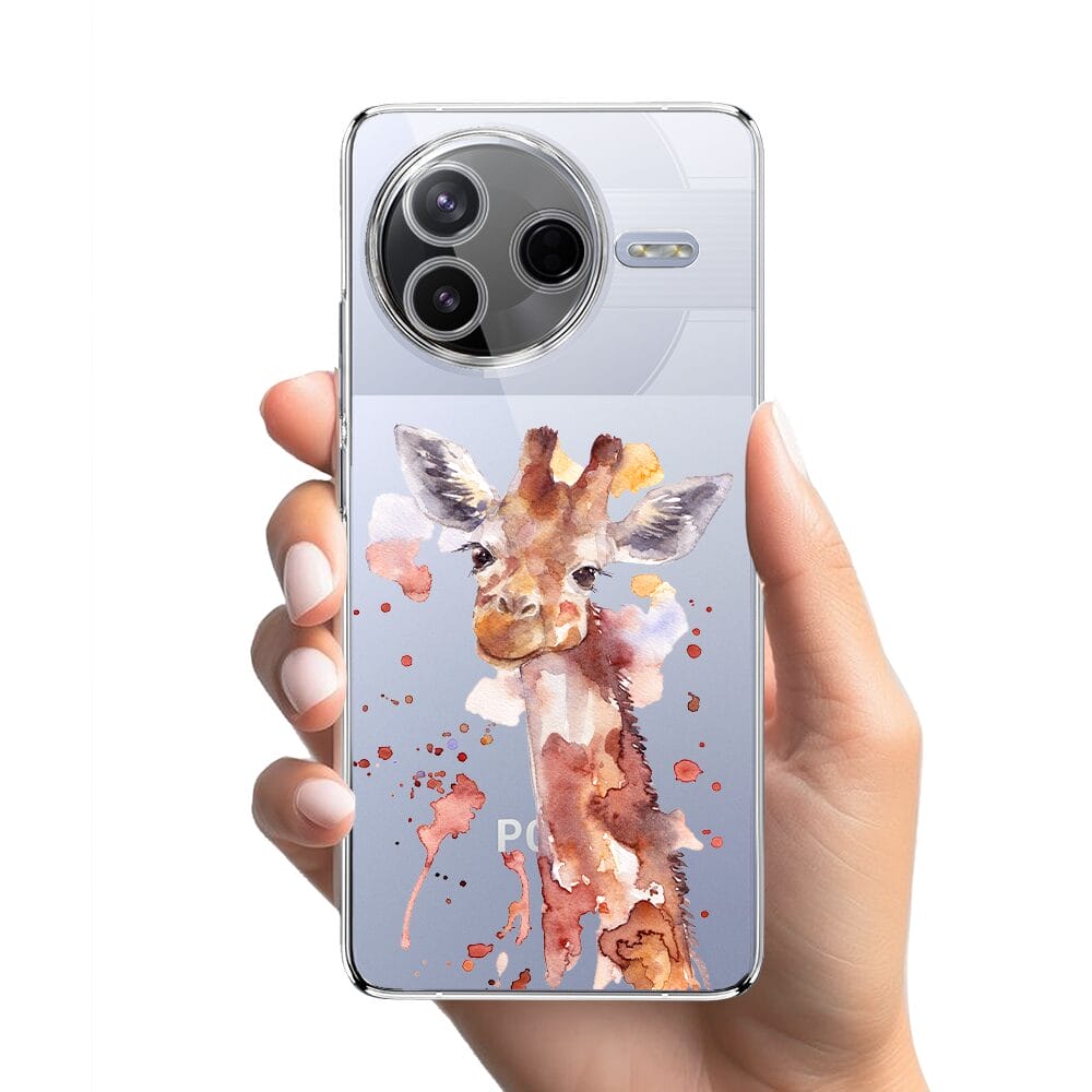 Etui do Xiaomi POCO F7 Pro przeźroczyste, silikonowe Flexi, Akwarelowe Zoo, Żyrafa