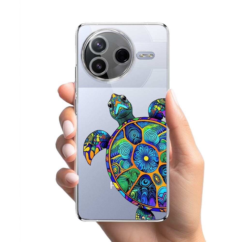 Etui do Xiaomi POCO F7 Pro przeźroczyste, silikonowe Flexi, Dzika Mandala, Żółw