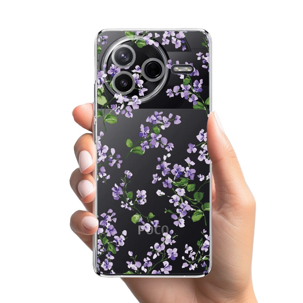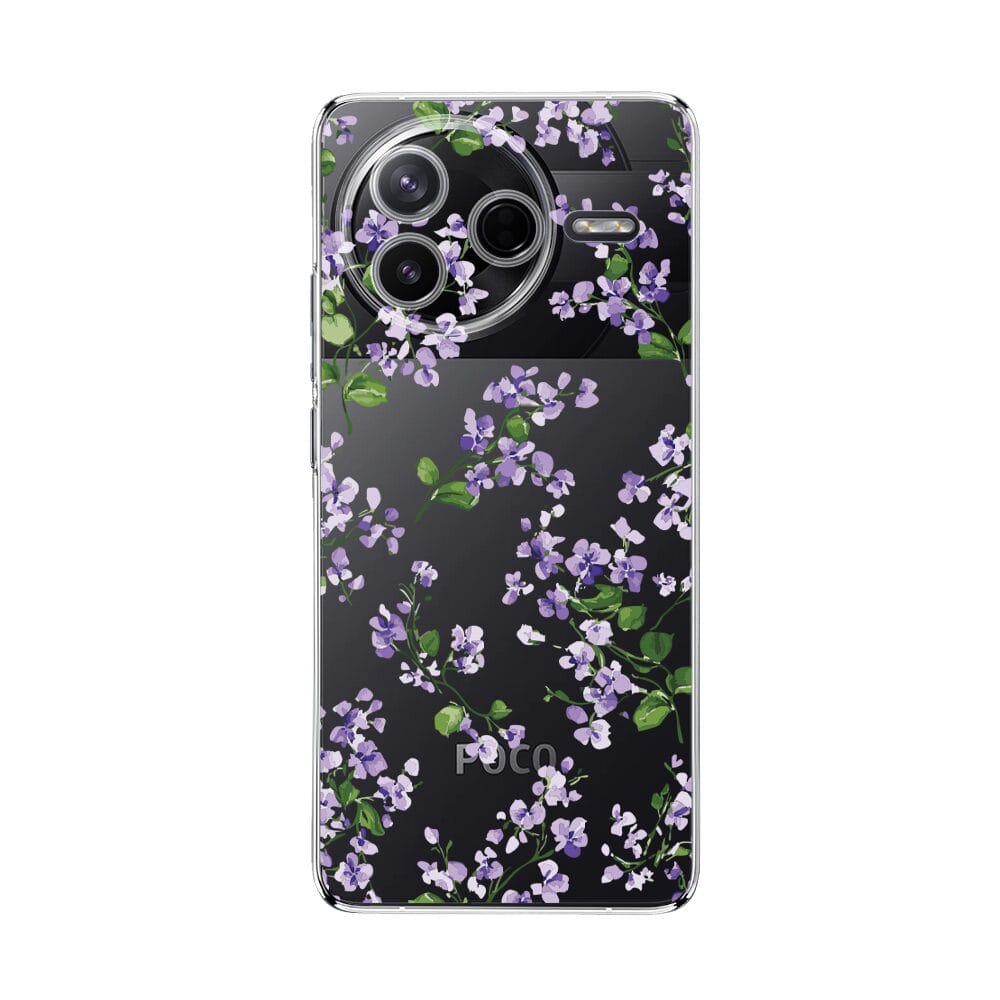 Etui do Xiaomi POCO F7 Pro przeźroczyste, silikonowe Flexi, Fioletowe Bratki
