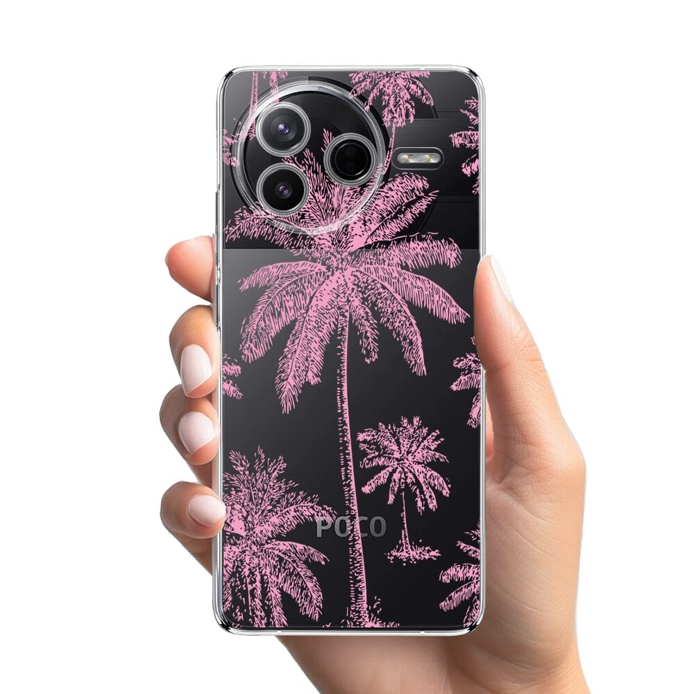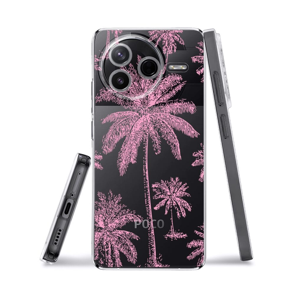 Etui do Xiaomi POCO F7 Pro przeźroczyste, silikonowe Flexi, Mystic, Różowe palmy