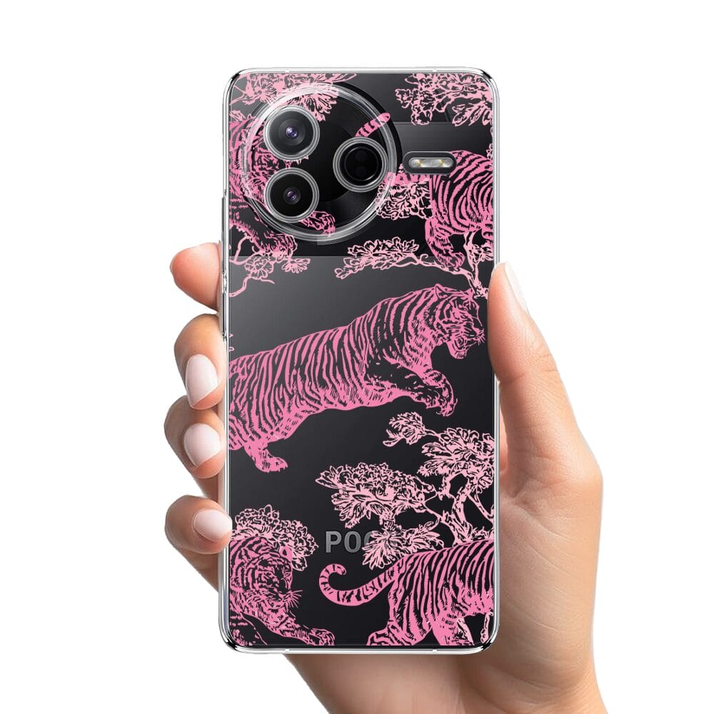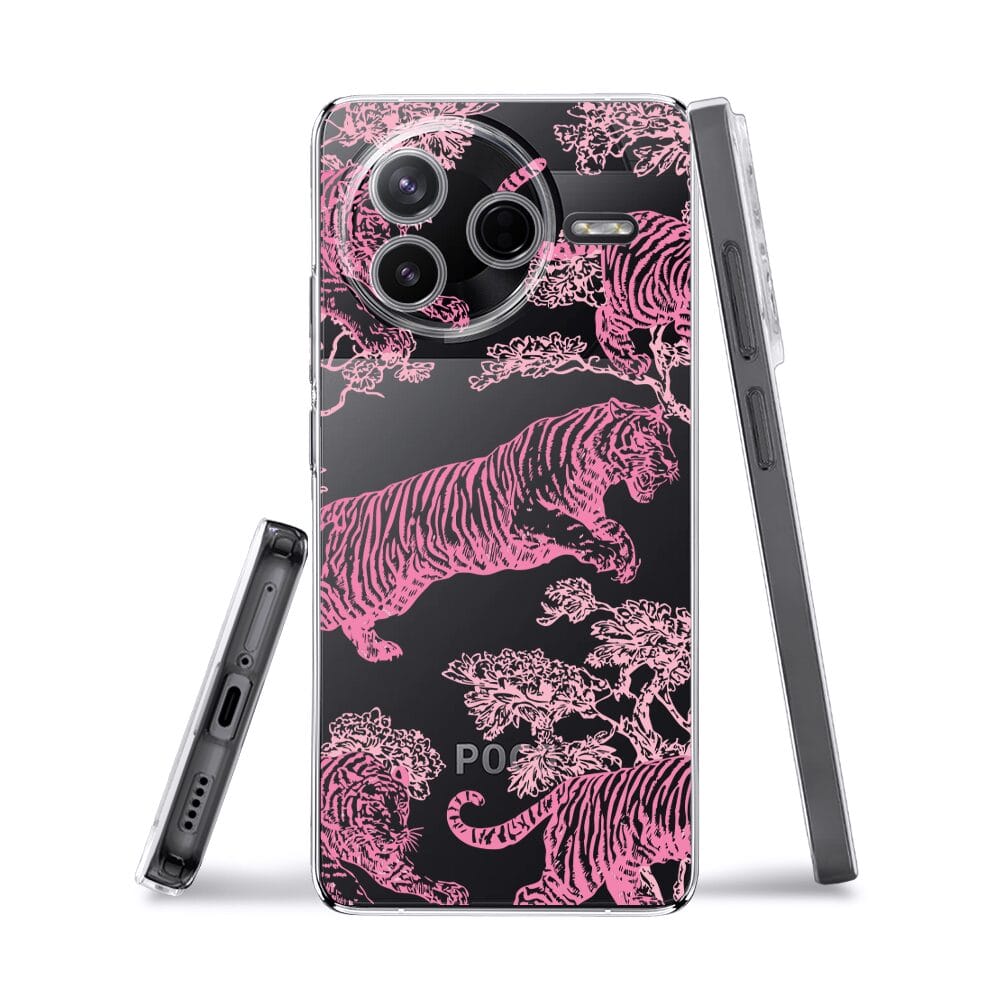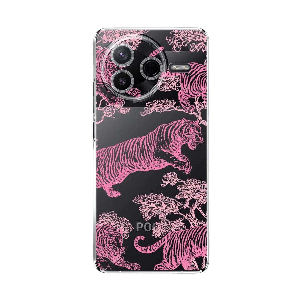 Etui do Xiaomi POCO F7 Pro przeźroczyste, silikonowe Flexi, Mystic, Różowe tygrysy
