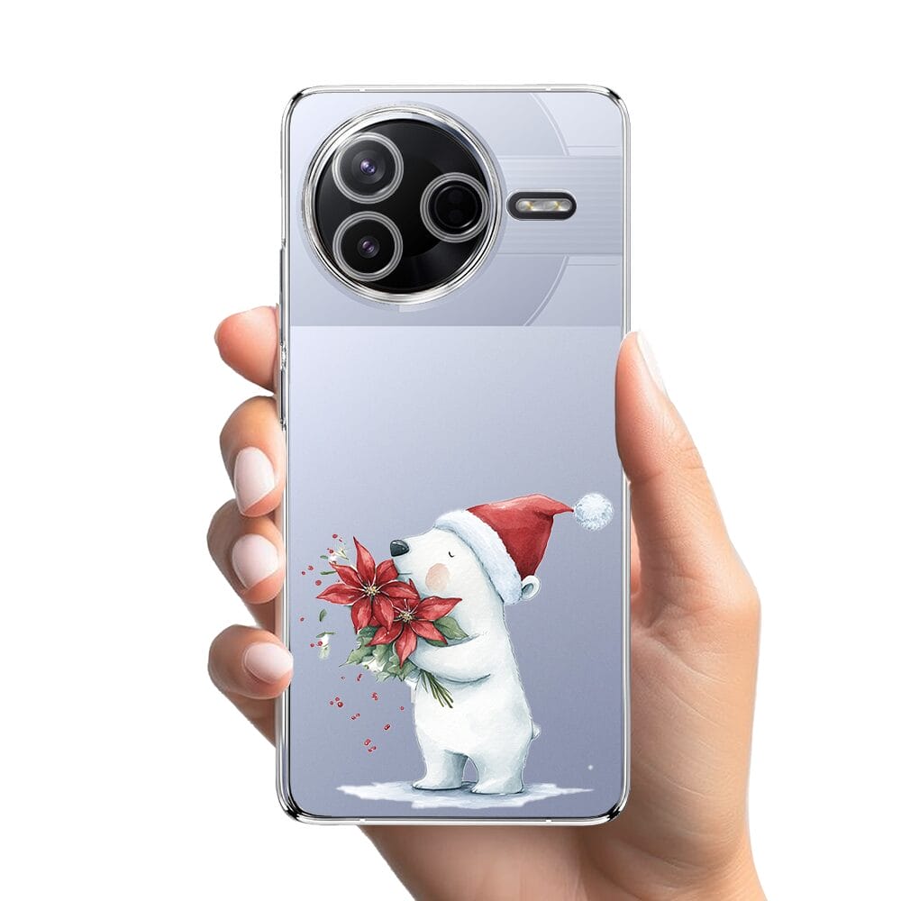 Etui do Xiaomi POCO F7 Pro przeźroczyste, silikonowe Flexi, Przytulne święta, Miś świąteczny