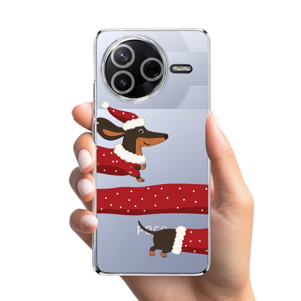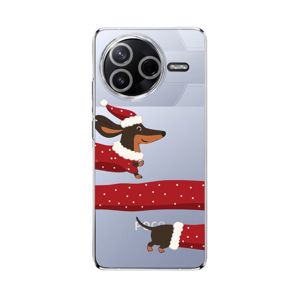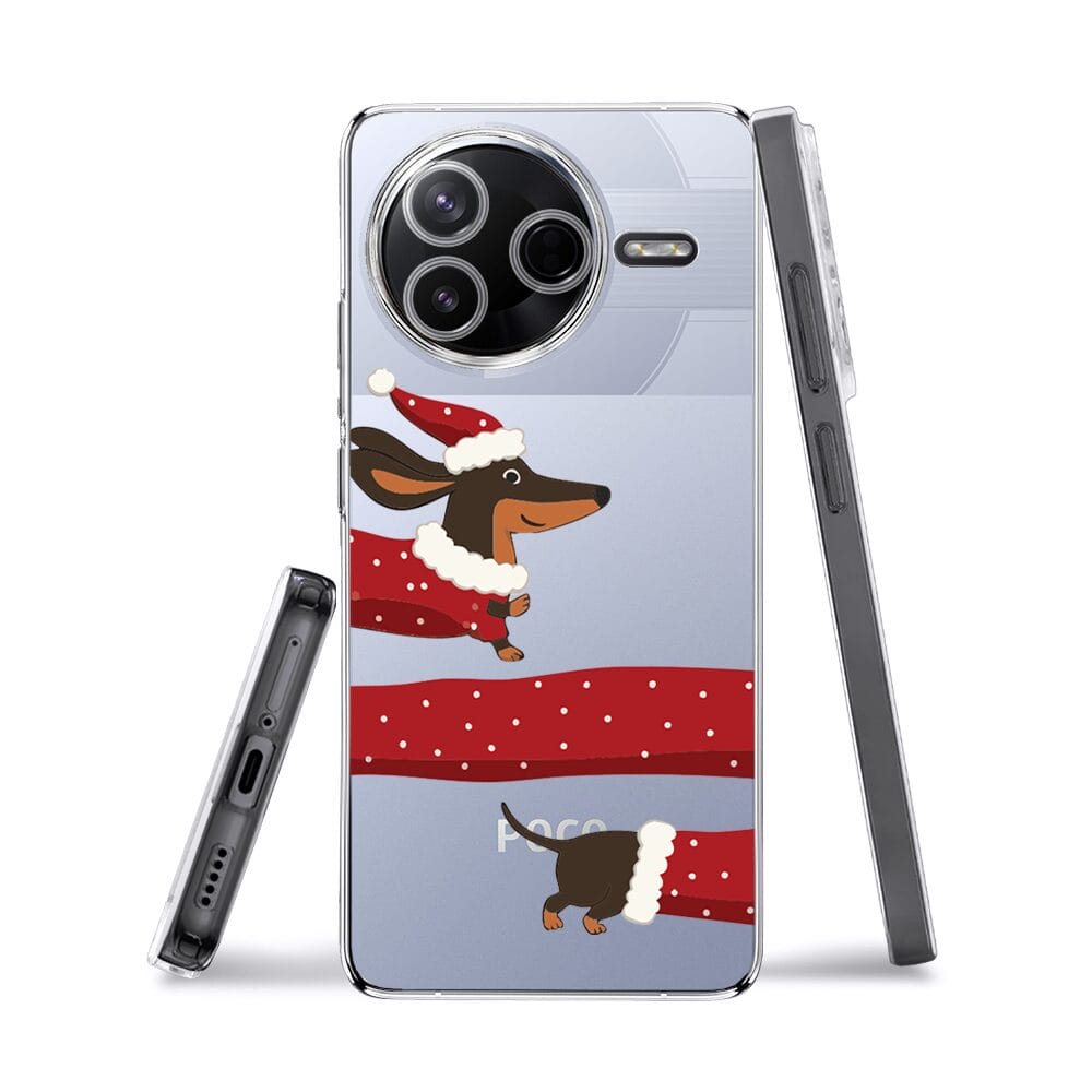 Etui do Xiaomi POCO F7 Pro przeźroczyste, silikonowe Flexi, Przytulne święta, świąteczny jamnik