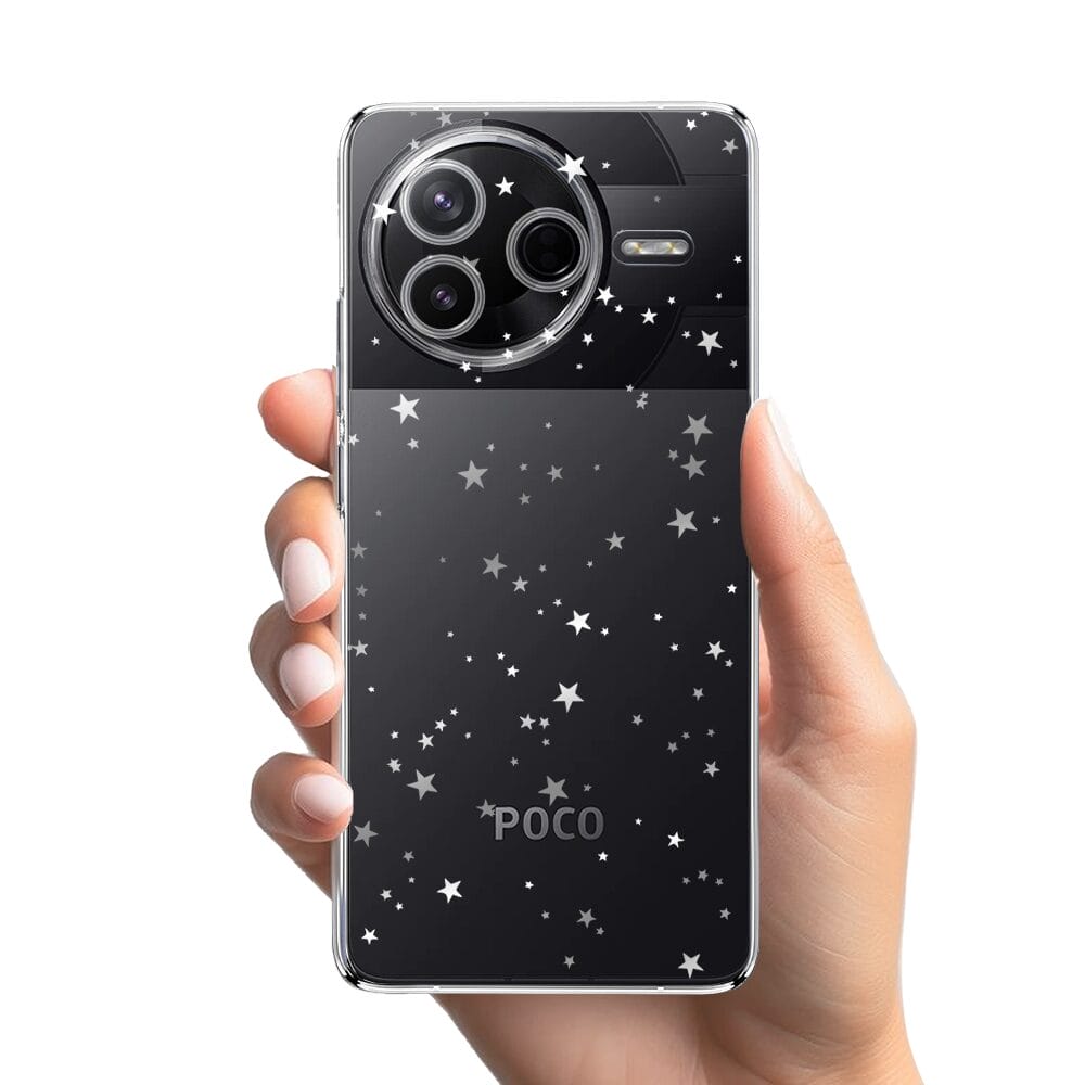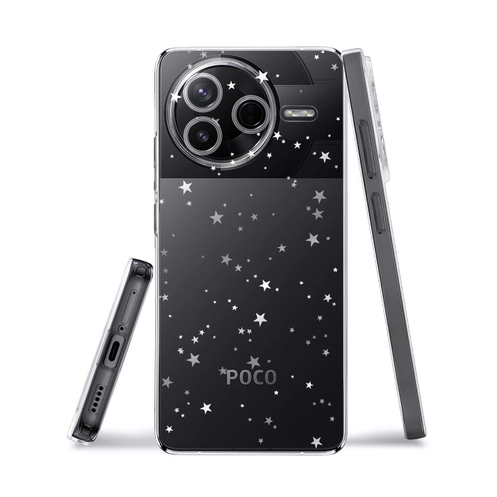 Etui do Xiaomi POCO F7 Pro przeźroczyste, silikonowe Flexi, Zimowa magia, Szampańskie gwiazdki