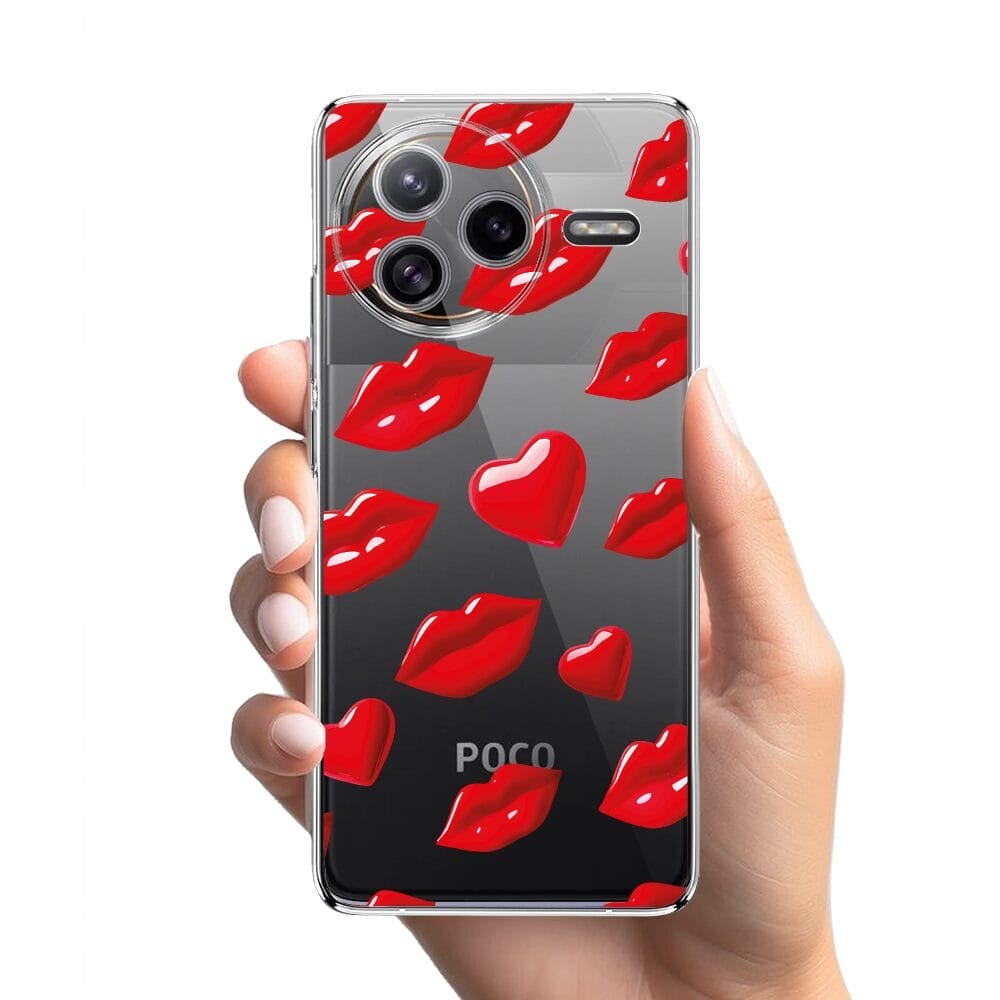 Etui do Xiaomi POCO F7 Ultra przeźroczyste, silikonowe Flexi, czerwone usta