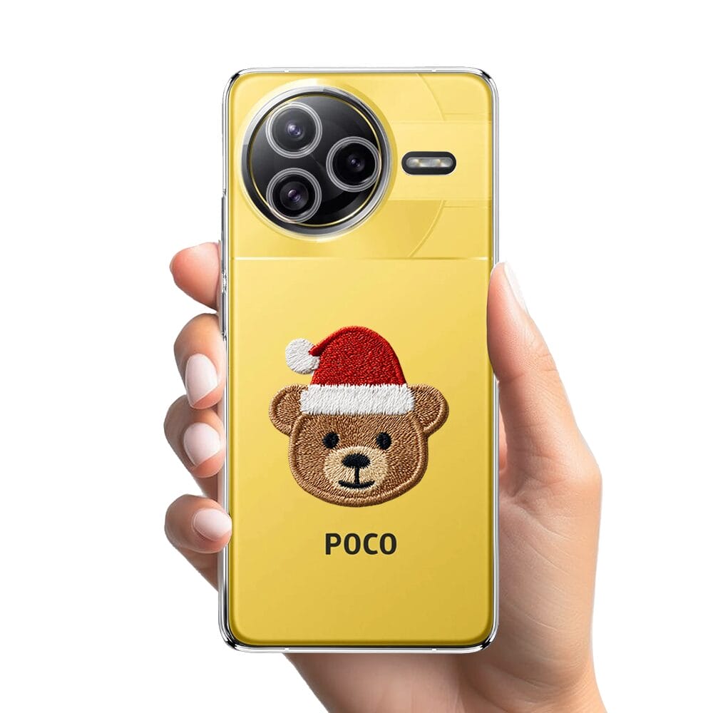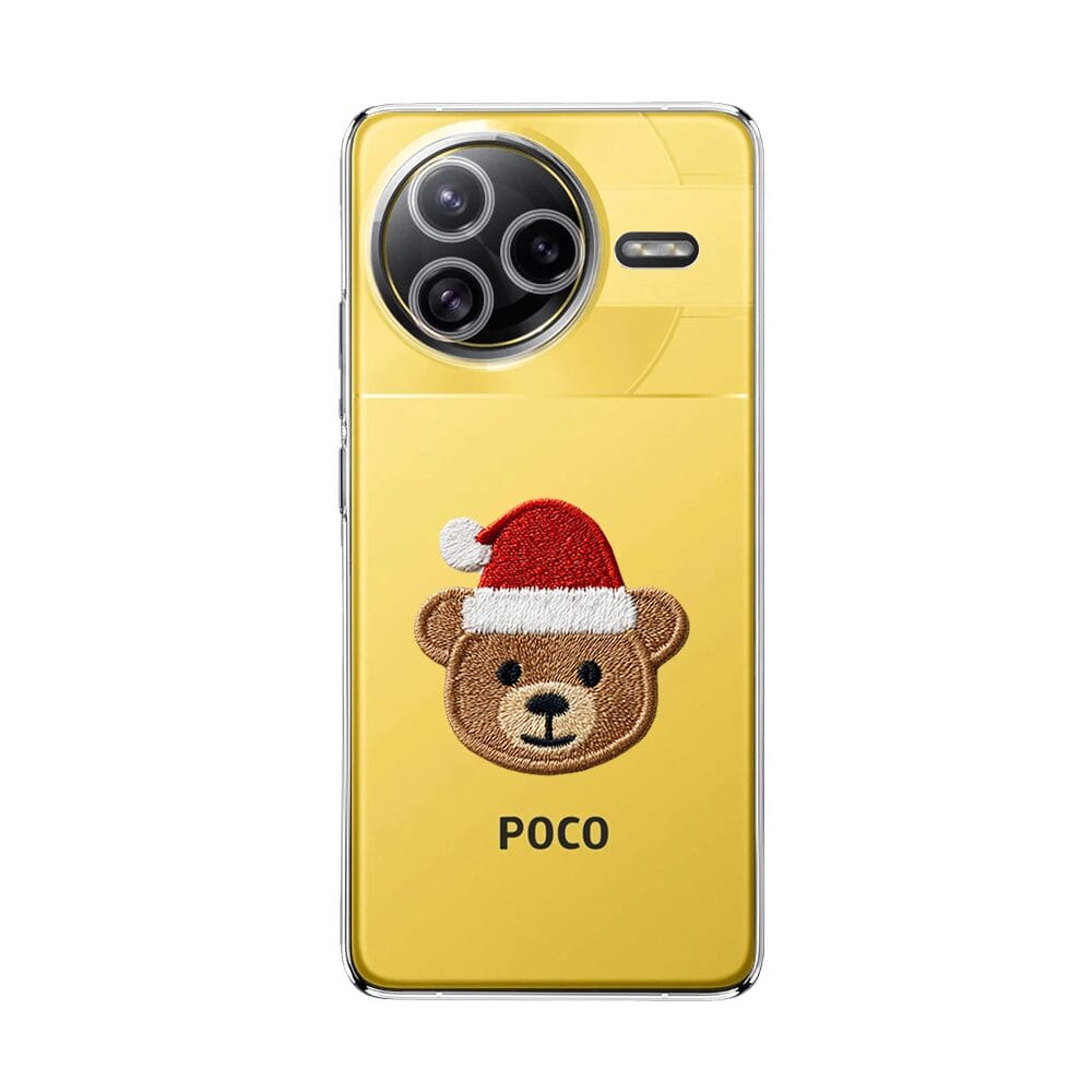 Etui do Xiaomi POCO F7 Ultra przeźroczyste, silikonowe Flexi, Przytulne święta, Miś mikołajek