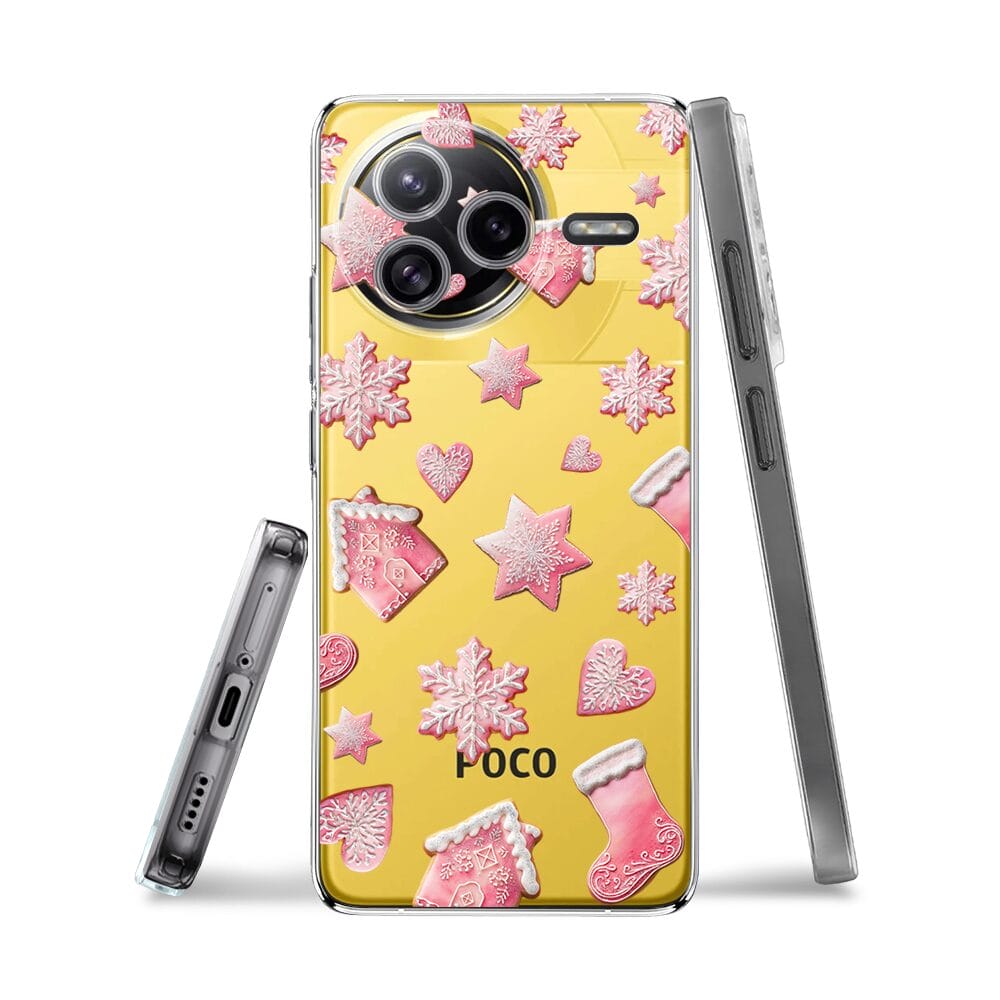 Etui do Xiaomi POCO F7 Ultra przeźroczyste, silikonowe Flexi, Przytulne święta, Różowe pierniczki