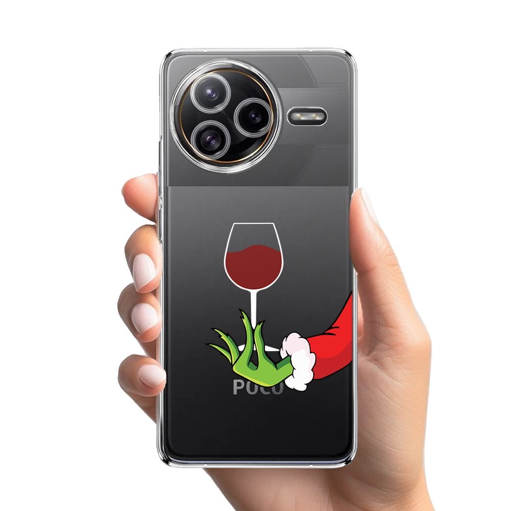 Etui do Xiaomi POCO F7 Ultra przeźroczyste, silikonowe Flexi, Zielony psotnik z lampką wina
