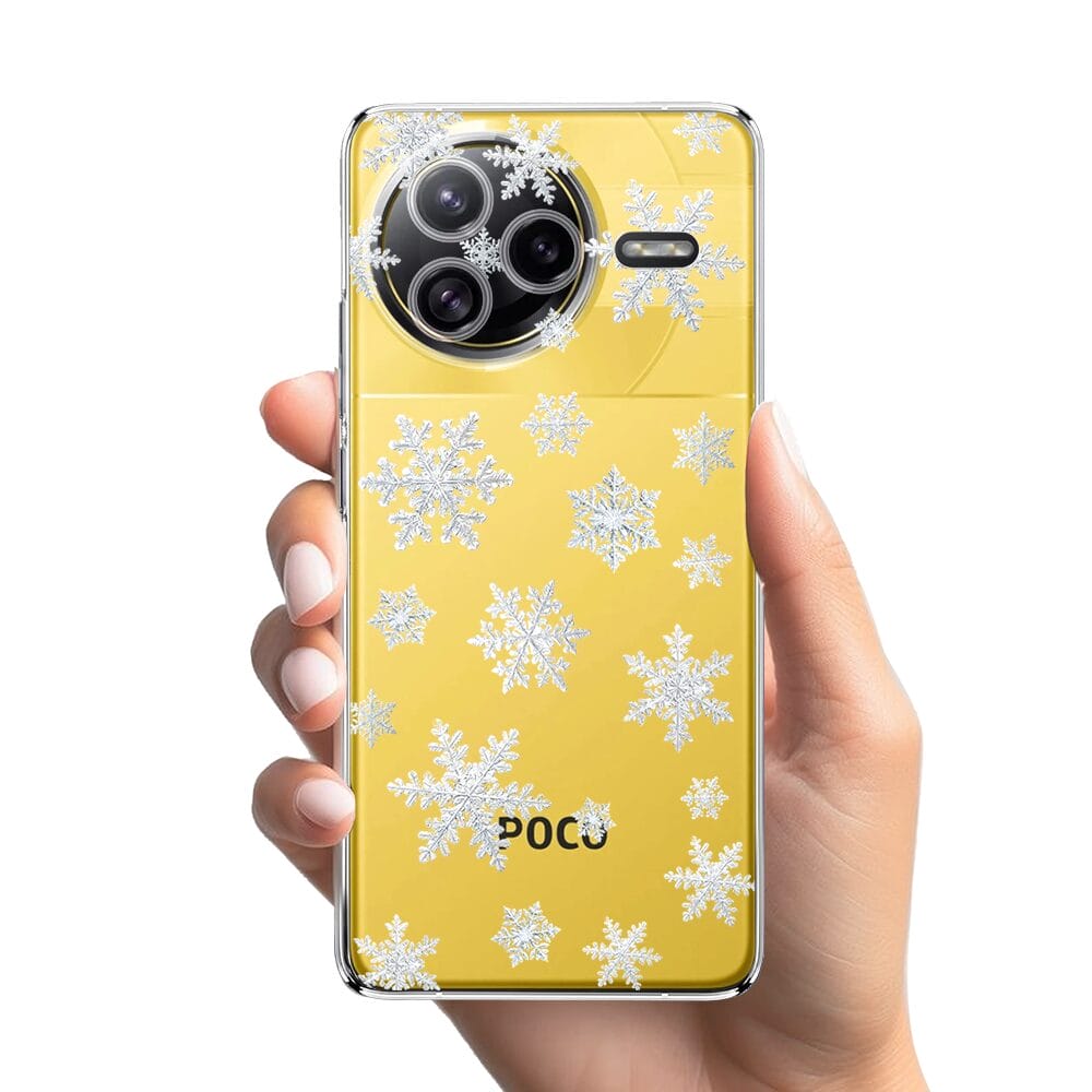 Etui do Xiaomi POCO F7 Ultra przeźroczyste, silikonowe Flexi, Zimowa magia, Delikatne płatki śniegu