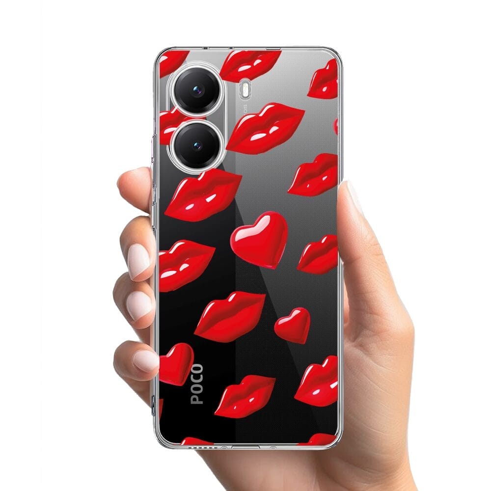Etui do Xiaomi POCO X7 Pro przeźroczyste, silikonowe Flexi, czerwone usta