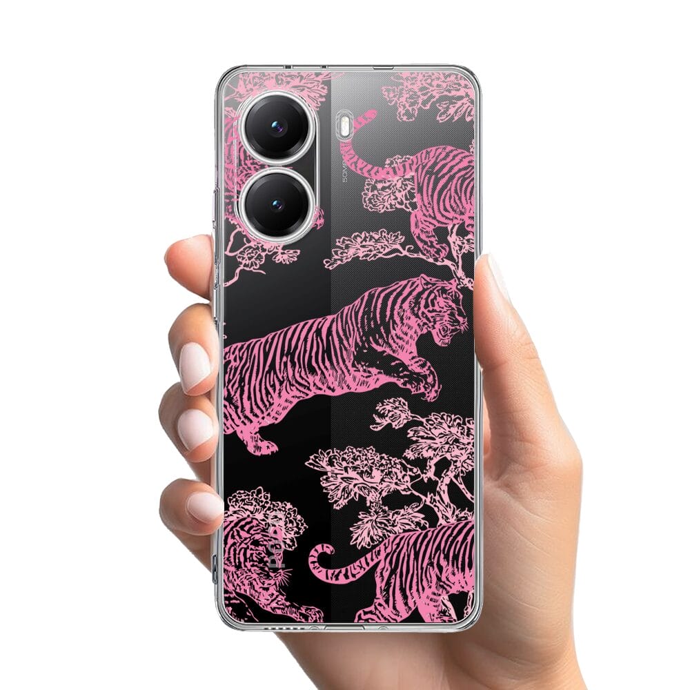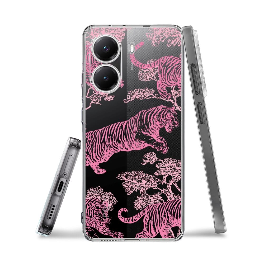 Etui do Xiaomi POCO X7 Pro przeźroczyste, silikonowe Flexi, Mystic, Różowe tygrysy