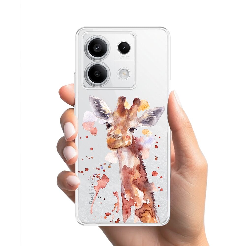 Etui do Xiaomi Redmi Note 13 Pro 5G przeźroczyste, silikonowe Flexi, Akwarelowe Zoo, Żyrafa