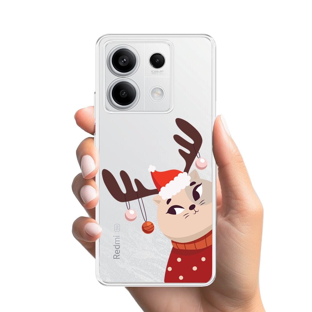 Etui do Xiaomi Redmi Note 13 Pro 5G przeźroczyste, silikonowe Flexi, Kotek przebrany za reniferka