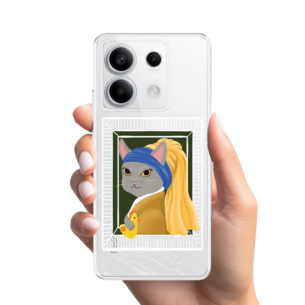 Etui do Xiaomi Redmi Note 13 Pro 5G przeźroczyste, silikonowe Flexi, kotek z kurczakiem