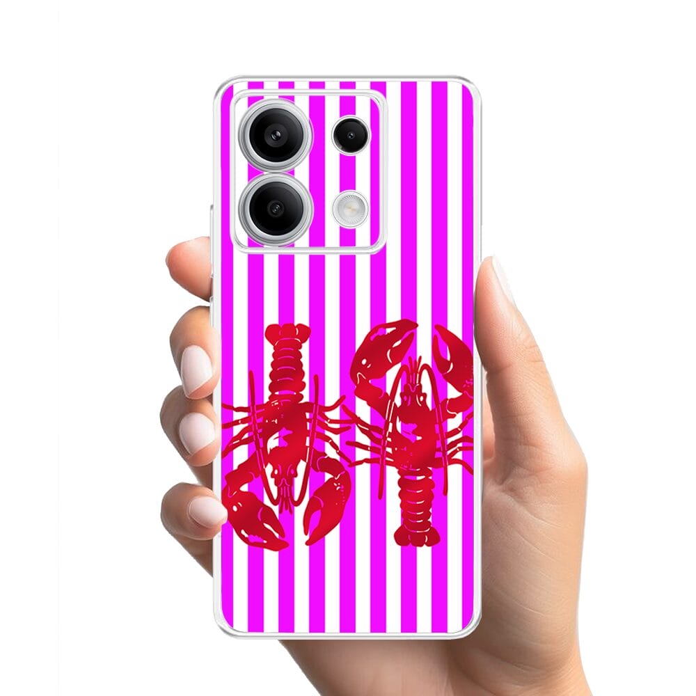 Etui do Xiaomi Redmi Note 13 Pro 5G przeźroczyste, silikonowe Flexi, kraby z różowymi paskami