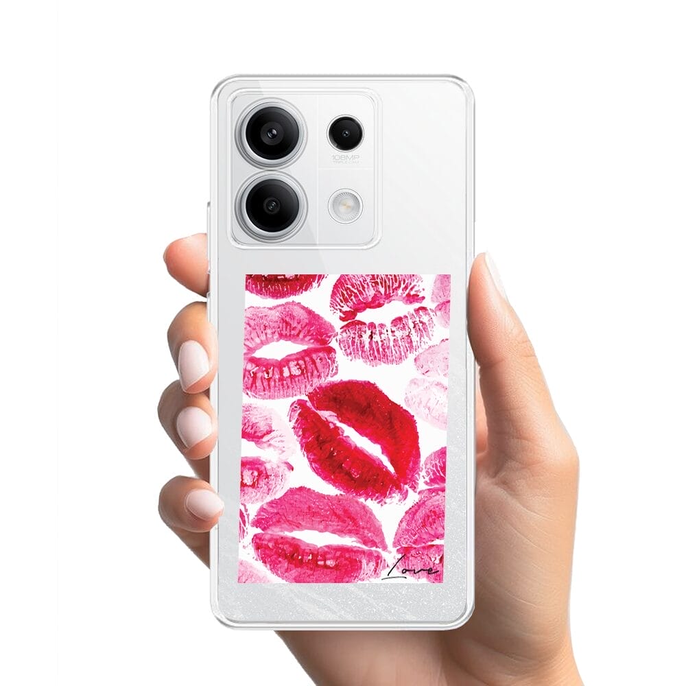 Etui do Xiaomi Redmi Note 13 Pro 5G przeźroczyste, silikonowe Flexi, pocałunki z napisem „love”