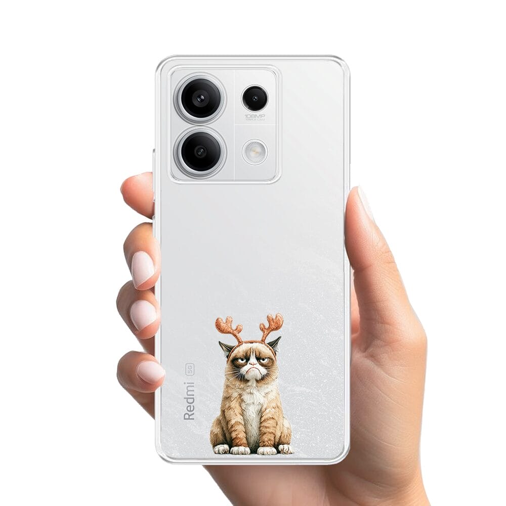 Etui do Xiaomi Redmi Note 13 Pro 5G przeźroczyste, silikonowe Flexi, Przytulne święta, Kot który nie chciał być reniferem