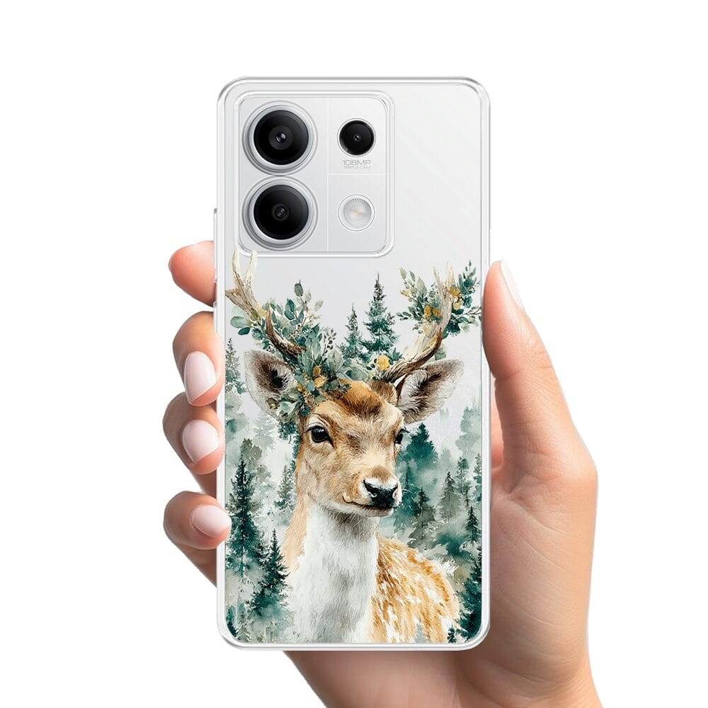 Etui do Xiaomi Redmi Note 13 Pro 5G przeźroczyste, silikonowe Flexi, Przytulne święta, Leśny jelonek