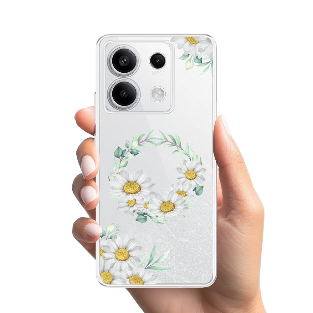 Etui do Xiaomi Redmi Note 13 Pro 5G przeźroczyste, silikonowe Flexi, wianek stokrotek