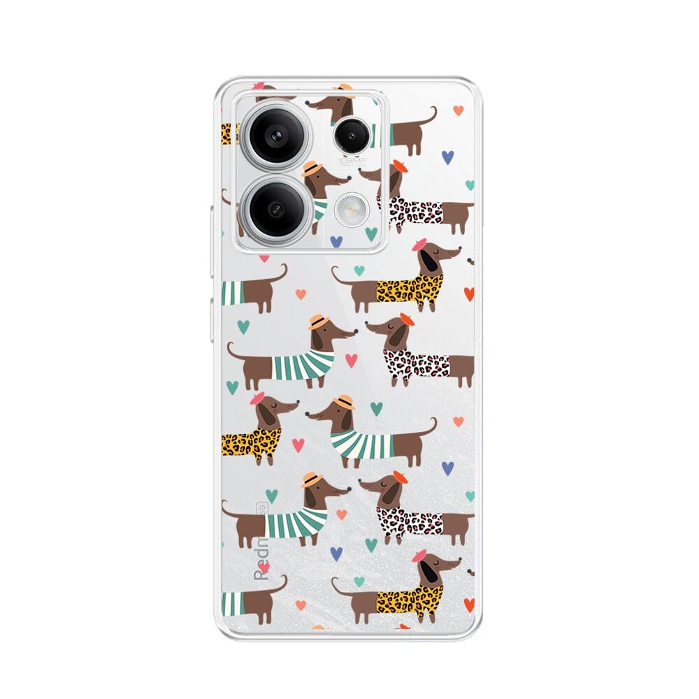 Etui do Xiaomi Redmi Note 13 Pro 5G przeźroczyste, silikonowe Flexi, zakochane jamniki