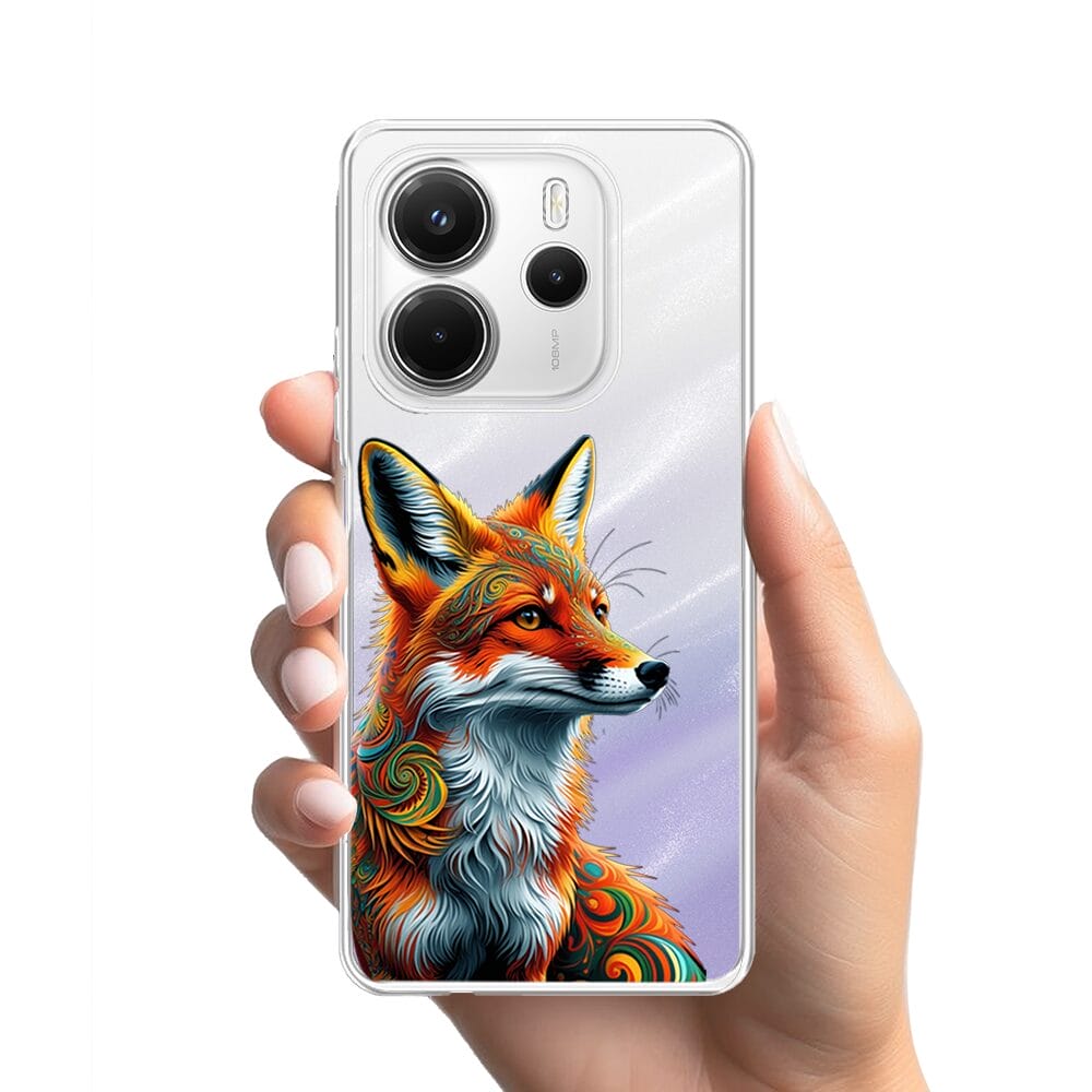 Etui do Xiaomi Redmi Note 14 4G przeźroczyste, silikonowe Flexi, Dzika Mandala, Twarz lisa