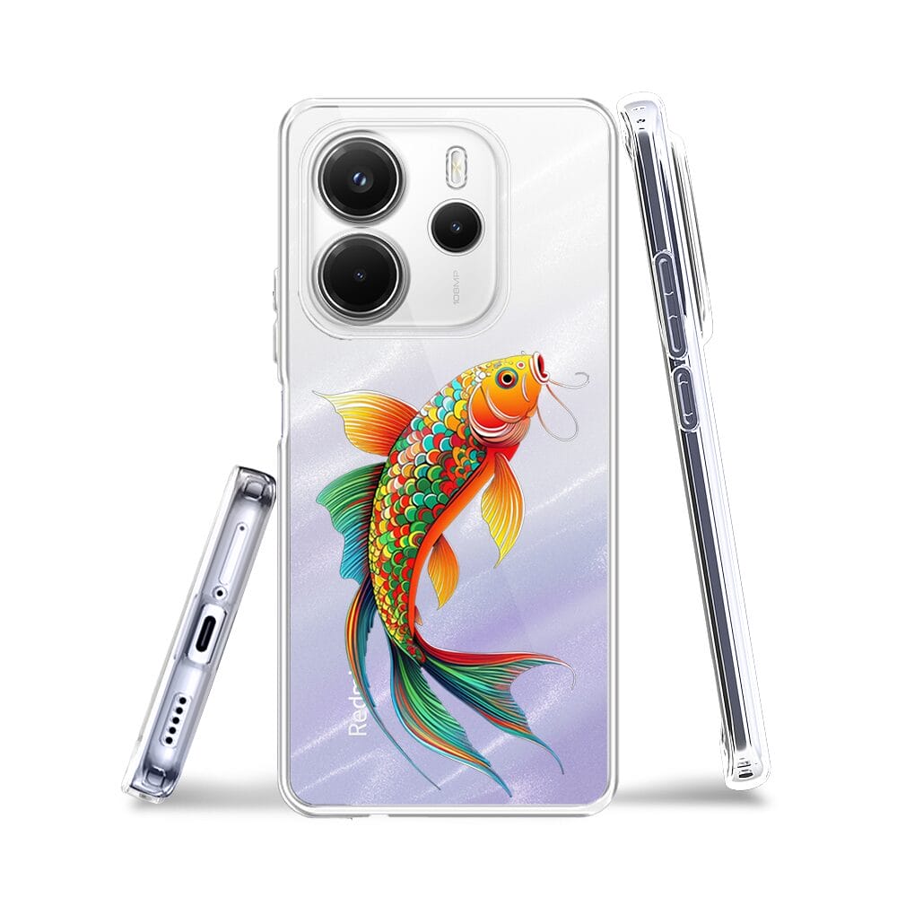 Etui do Xiaomi Redmi Note 14 4G przeźroczyste, silikonowe Flexi, Dzika Mandala, Złota ryba