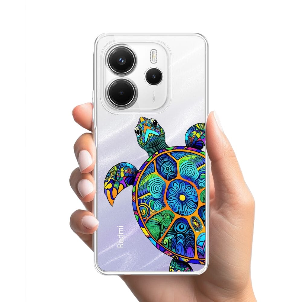 Etui do Xiaomi Redmi Note 14 4G przeźroczyste, silikonowe Flexi, Dzika Mandala, Żółw
