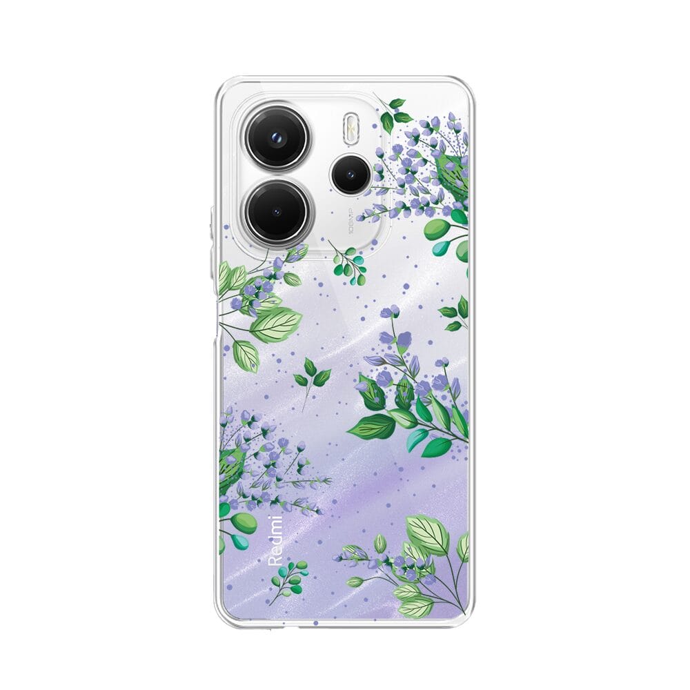 Etui do Xiaomi Redmi Note 14 4G przeźroczyste, silikonowe Flexi, fioletowe kwiatki