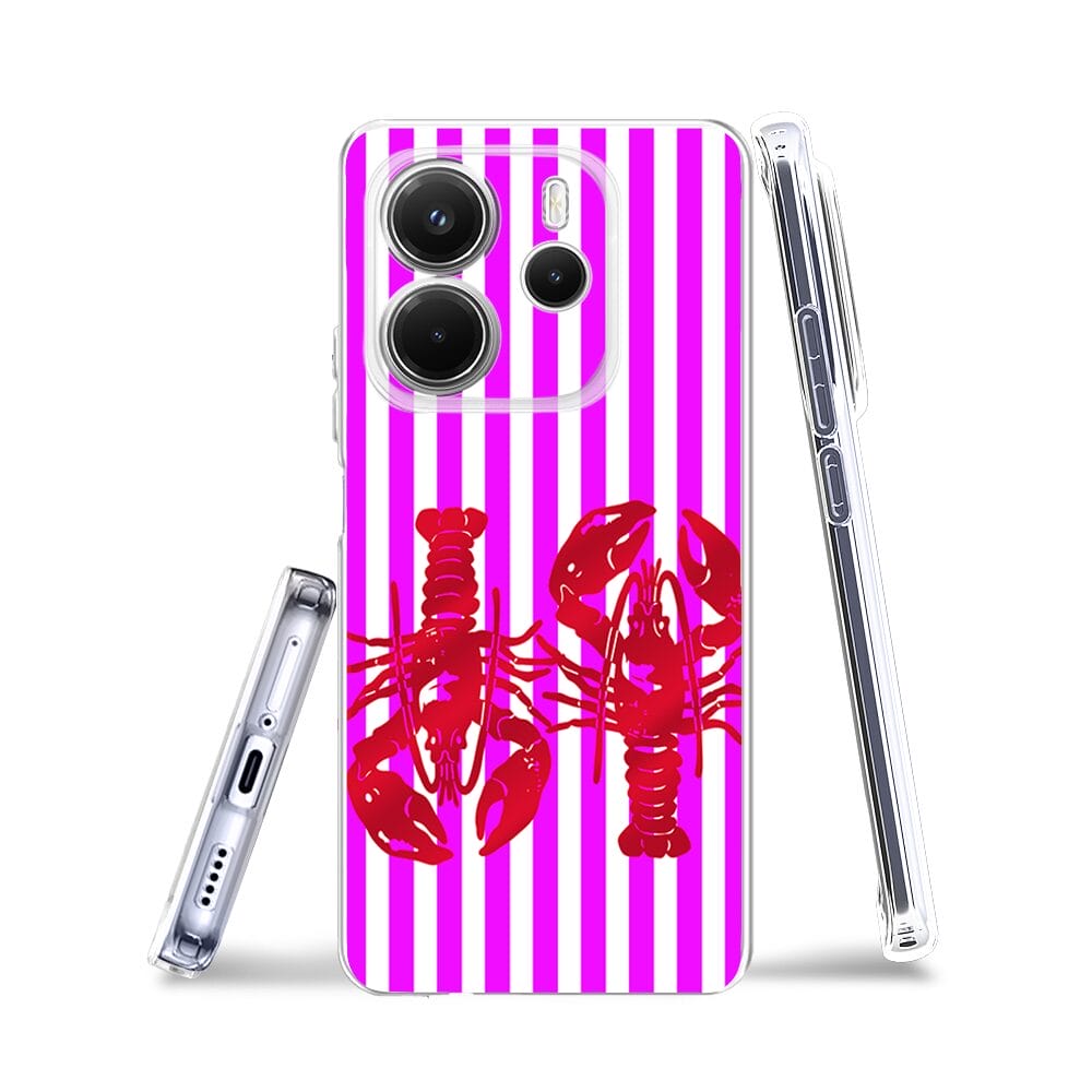 Etui do Xiaomi Redmi Note 14 4G przeźroczyste, silikonowe Flexi, kraby z różowymi paskami