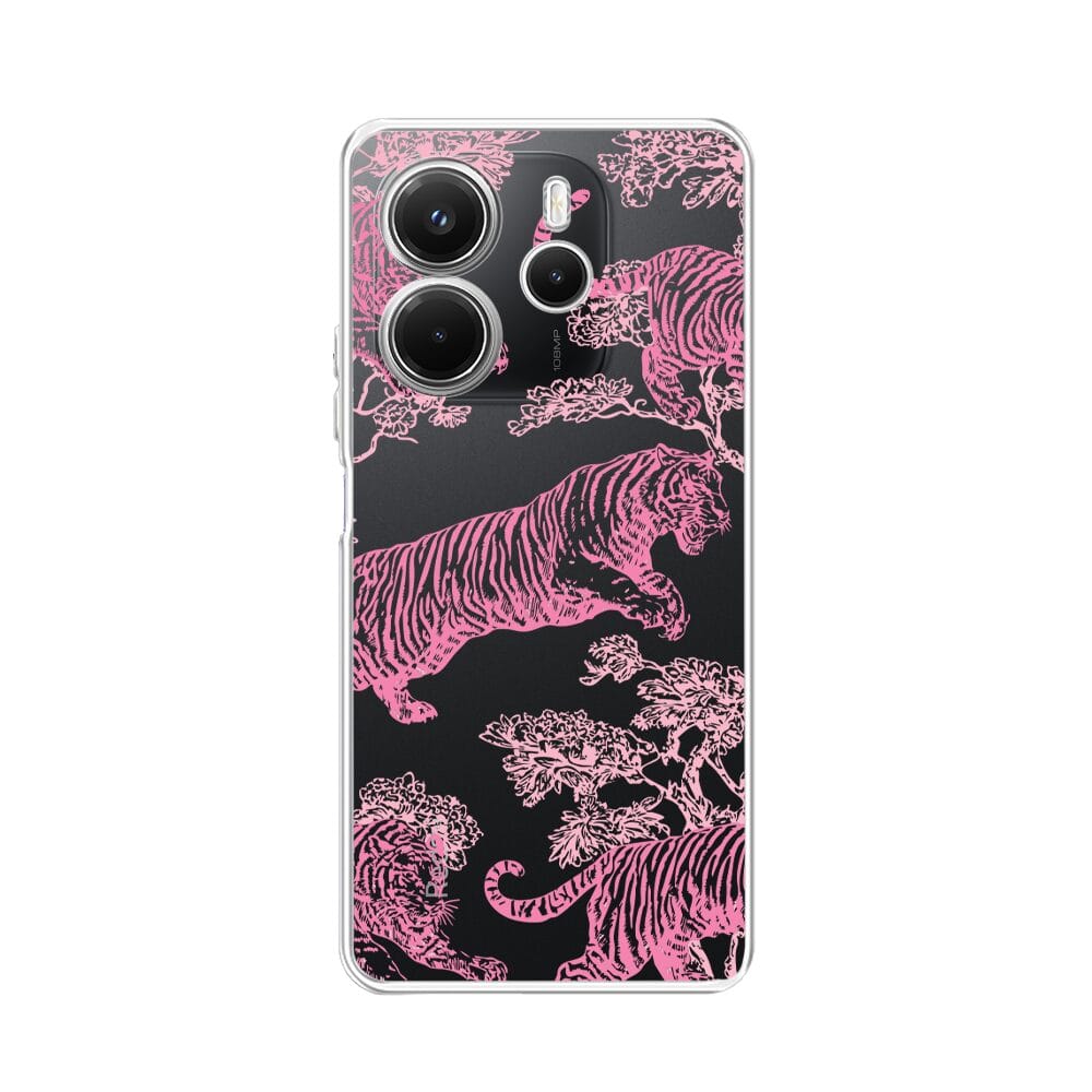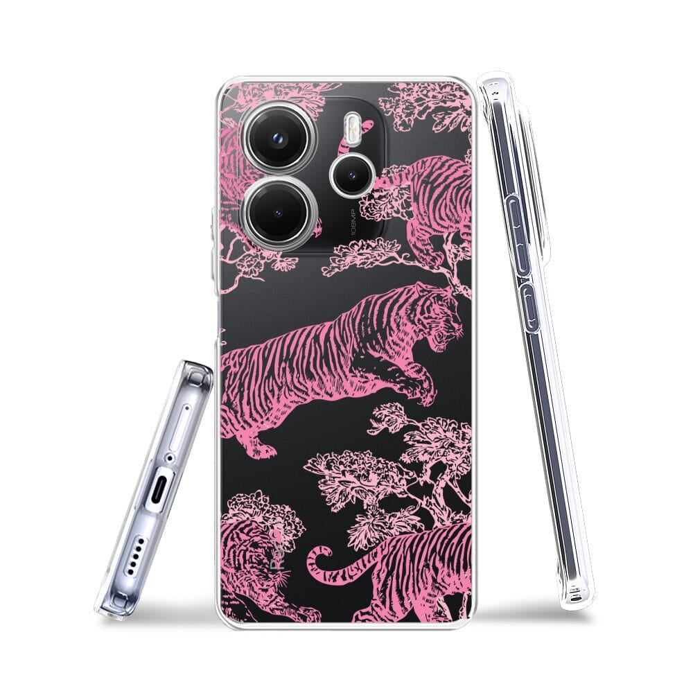 Etui do Xiaomi Redmi Note 14 4G przeźroczyste, silikonowe Flexi, Mystic, Różowe tygrysy