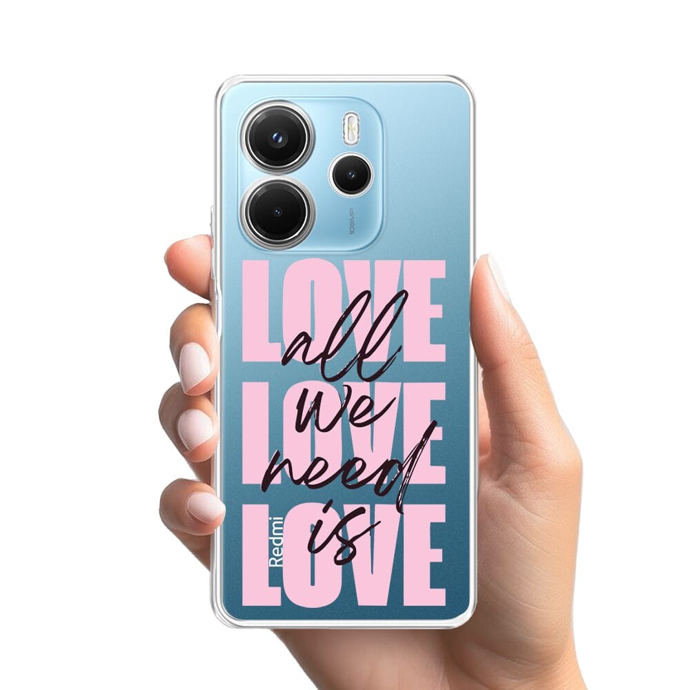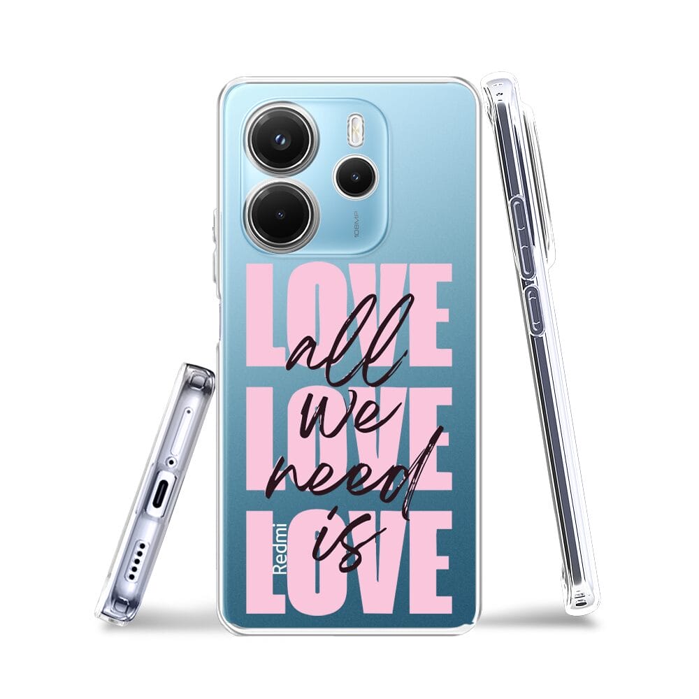 Etui do Xiaomi Redmi Note 14 4G przeźroczyste, silikonowe Flexi, Positive Vibes, All We Need Is Love