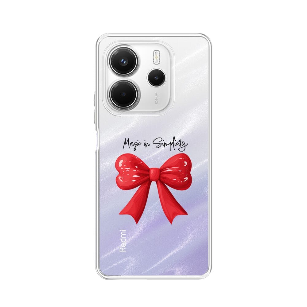 Etui do Xiaomi Redmi Note 14 4G przeźroczyste, silikonowe Flexi, Przytulne święta, Czerwona kokarda