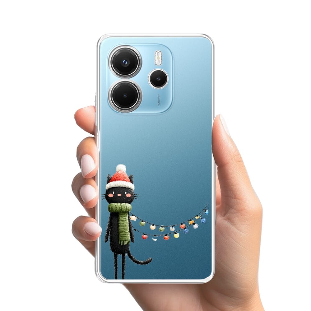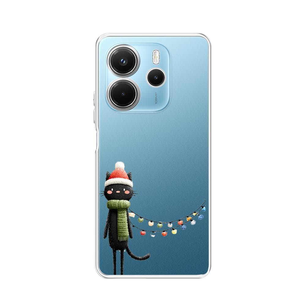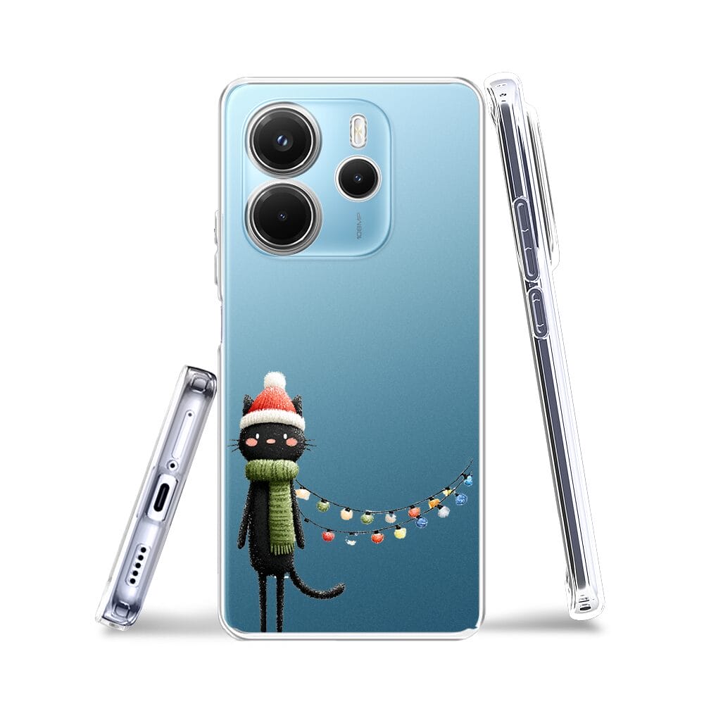 Etui do Xiaomi Redmi Note 14 4G przeźroczyste, silikonowe Flexi, Przytulne święta, Kot przebrany za elfa