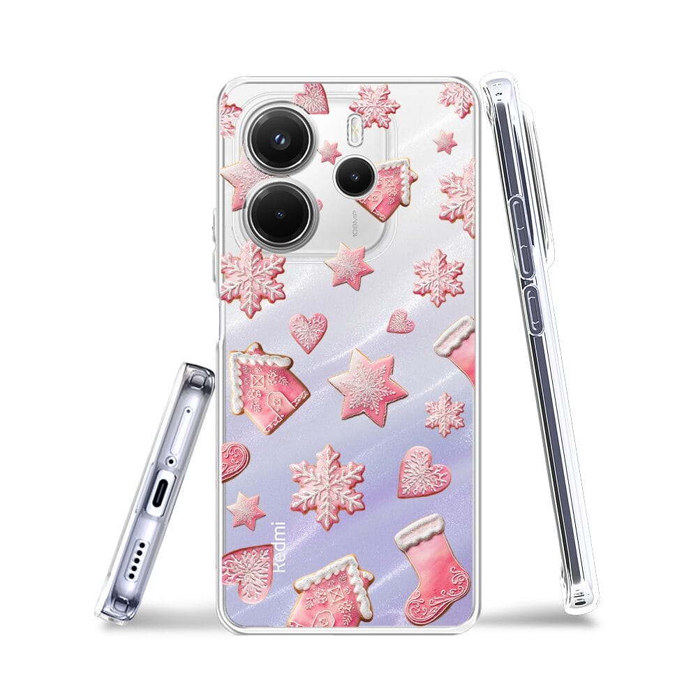 Etui do Xiaomi Redmi Note 14 4G przeźroczyste, silikonowe Flexi, Przytulne święta, Różowe pierniczki