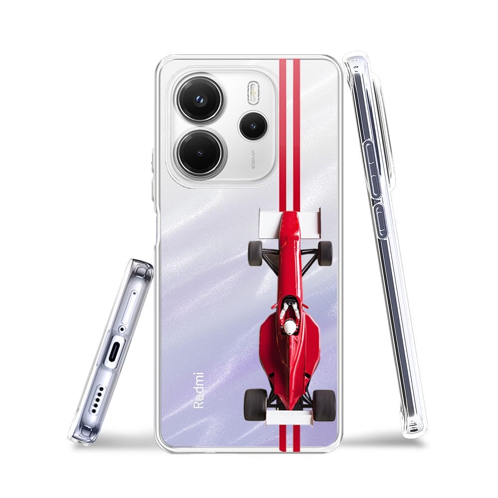 Etui do Xiaomi Redmi Note 14 4G przeźroczyste, silikonowe Flexi, Szybkie Auta, czerwone F1