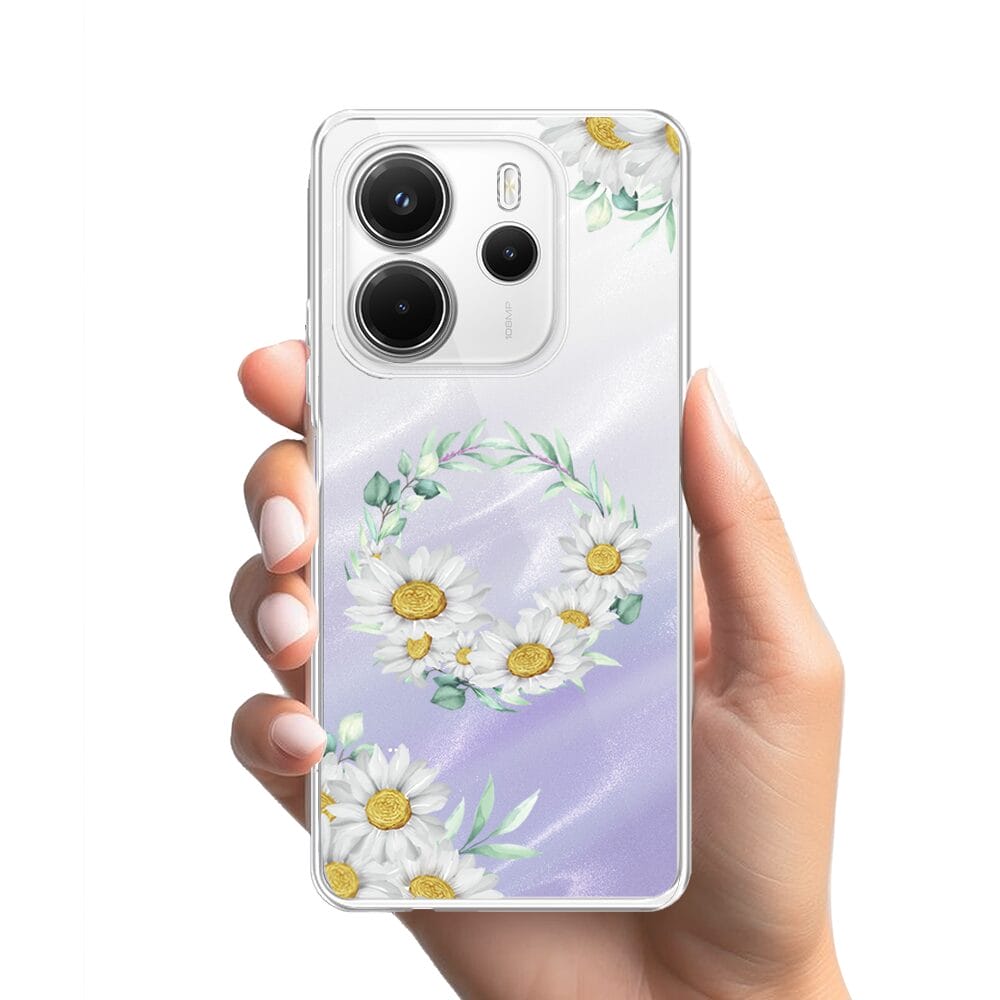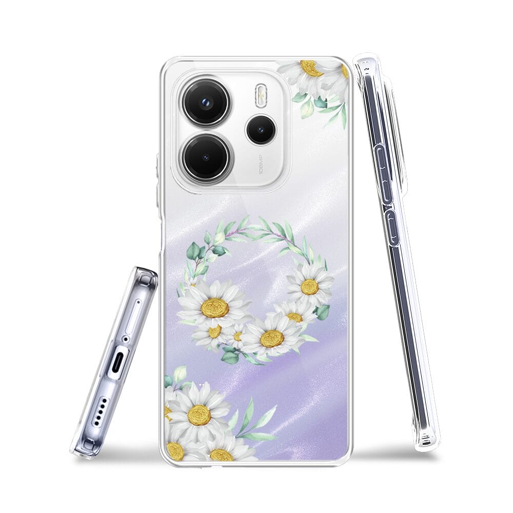 Etui do Xiaomi Redmi Note 14 4G przeźroczyste, silikonowe Flexi, wianek stokrotek