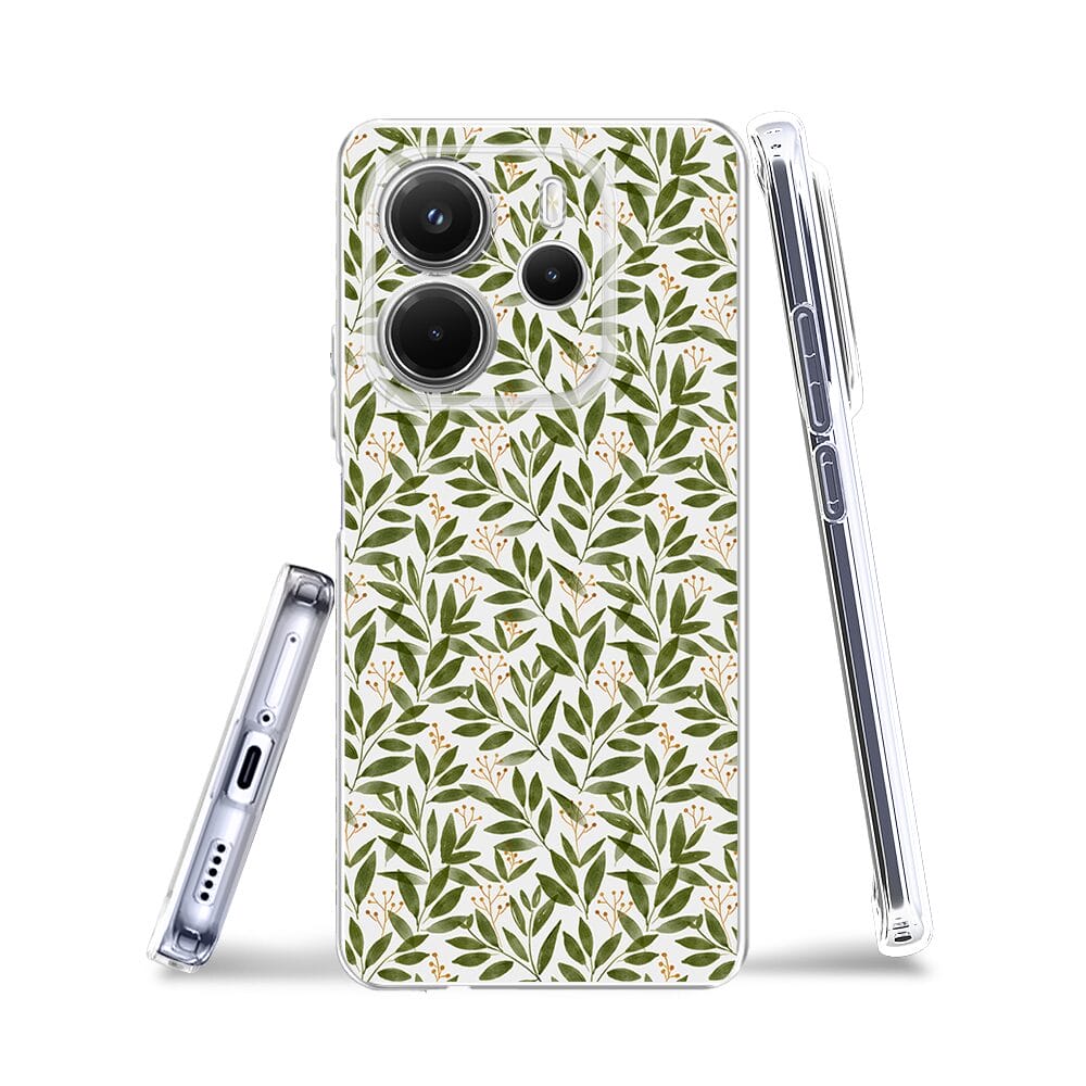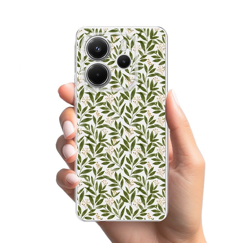 Etui do Xiaomi Redmi Note 14 4G przeźroczyste, silikonowe Flexi, zielone gałązki