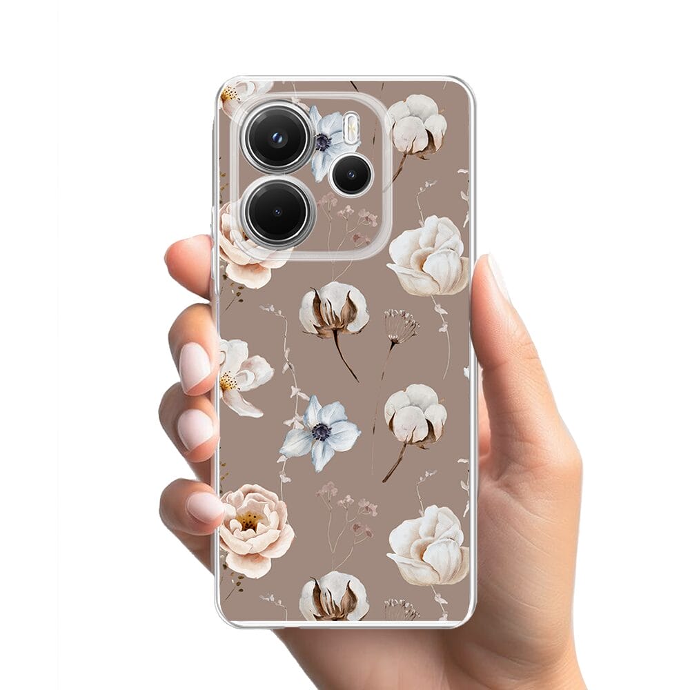 Etui do Xiaomi Redmi Note 14 5G przeźroczyste, silikonowe Flexi, akwarelowe kwiatki