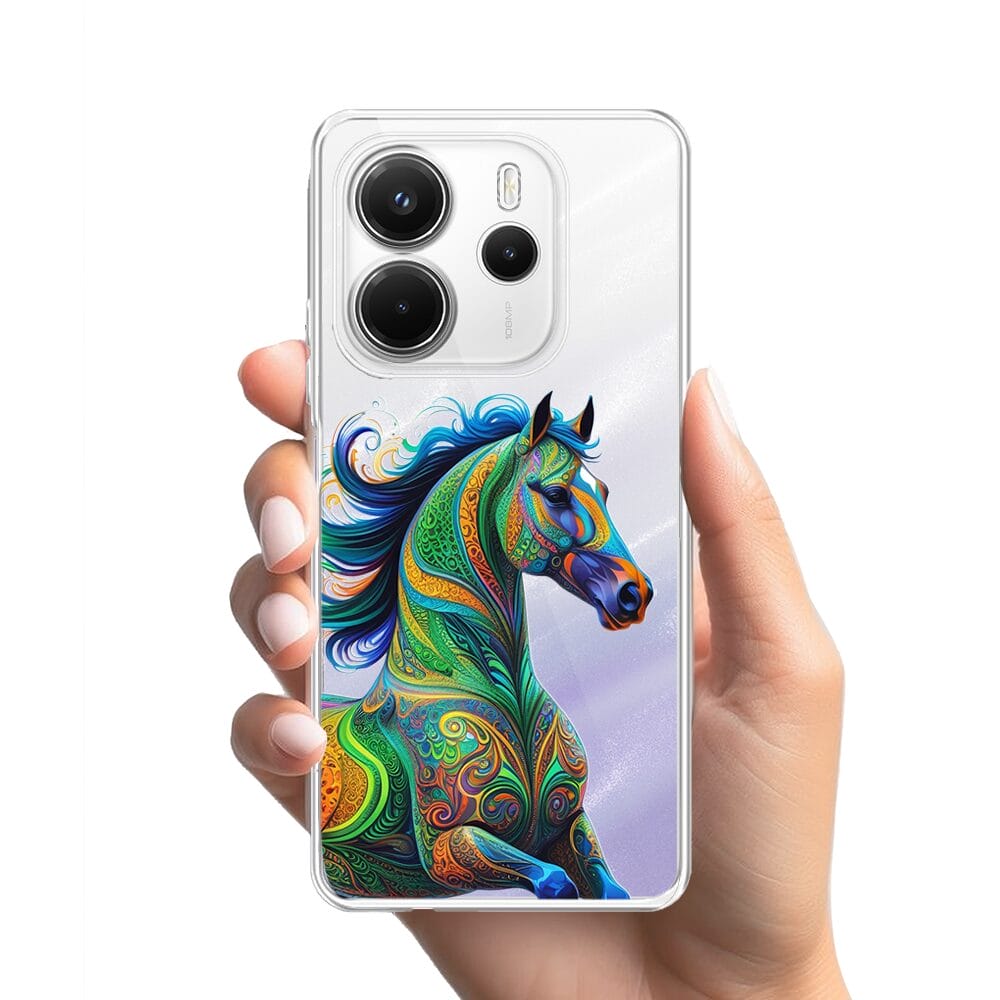 Etui do Xiaomi Redmi Note 14 5G przeźroczyste, silikonowe Flexi, Dzika Mandala, Koń