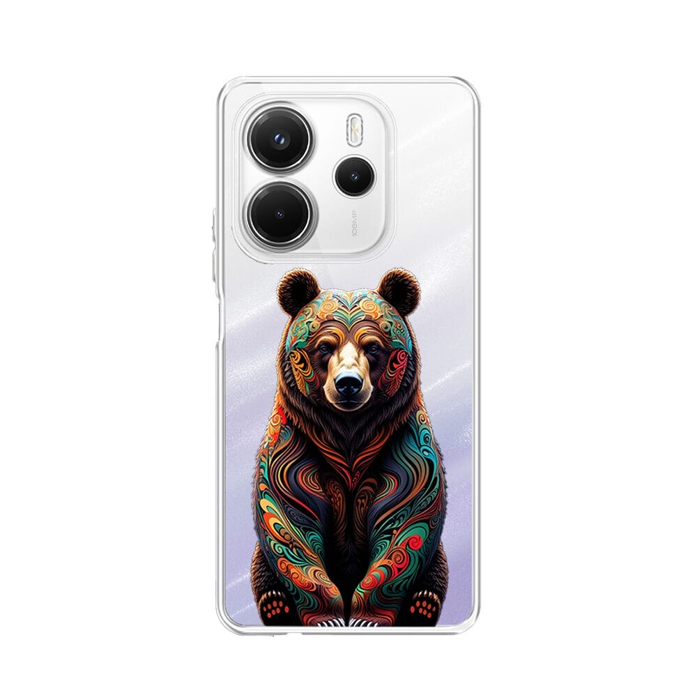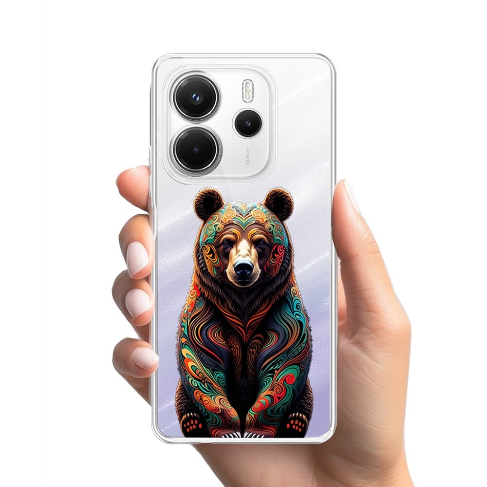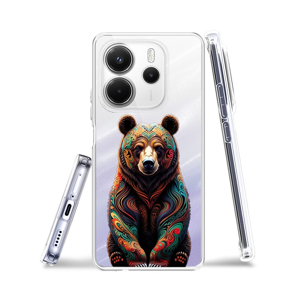 Etui do Xiaomi Redmi Note 14 5G przeźroczyste, silikonowe Flexi, Dzika Mandala, Niedźwiedź
