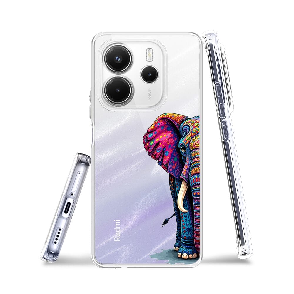 Etui do Xiaomi Redmi Note 14 5G przeźroczyste, silikonowe Flexi, Dzika Mandala, Słoń