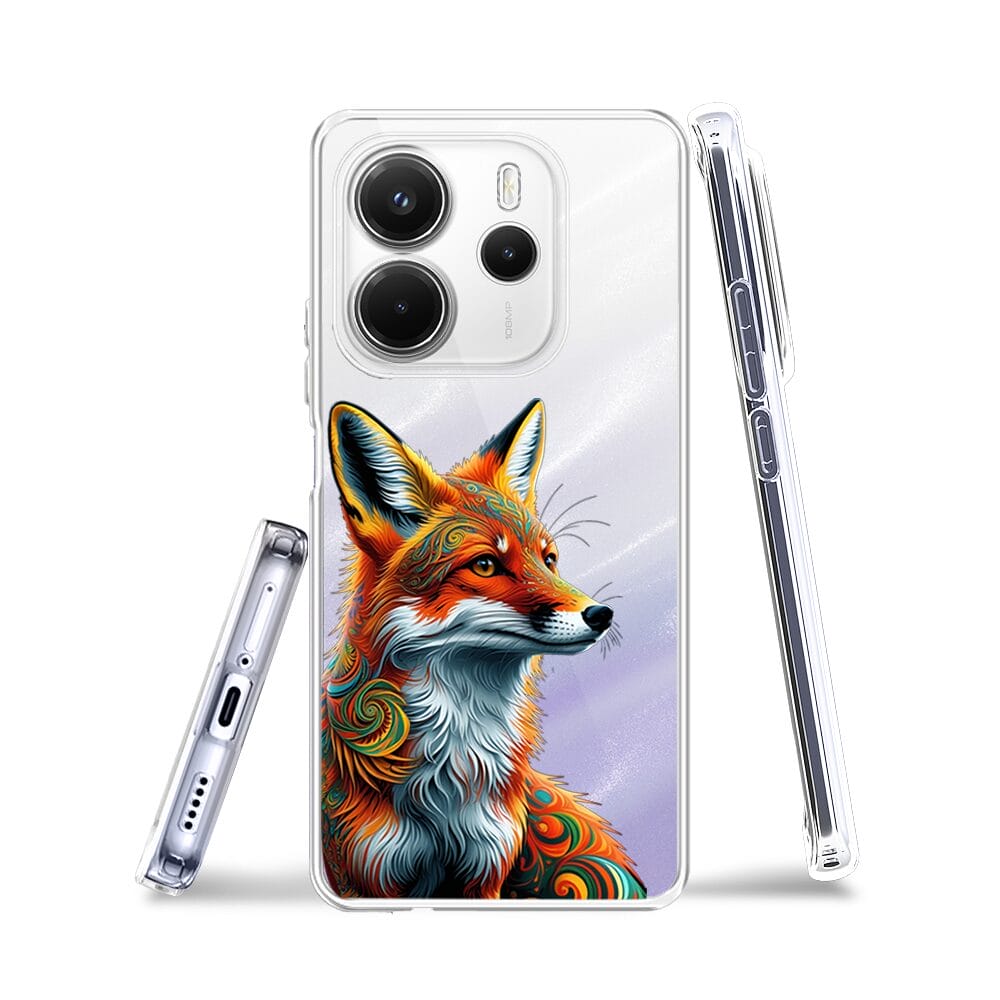 Etui do Xiaomi Redmi Note 14 5G przeźroczyste, silikonowe Flexi, Dzika Mandala, Twarz lisa