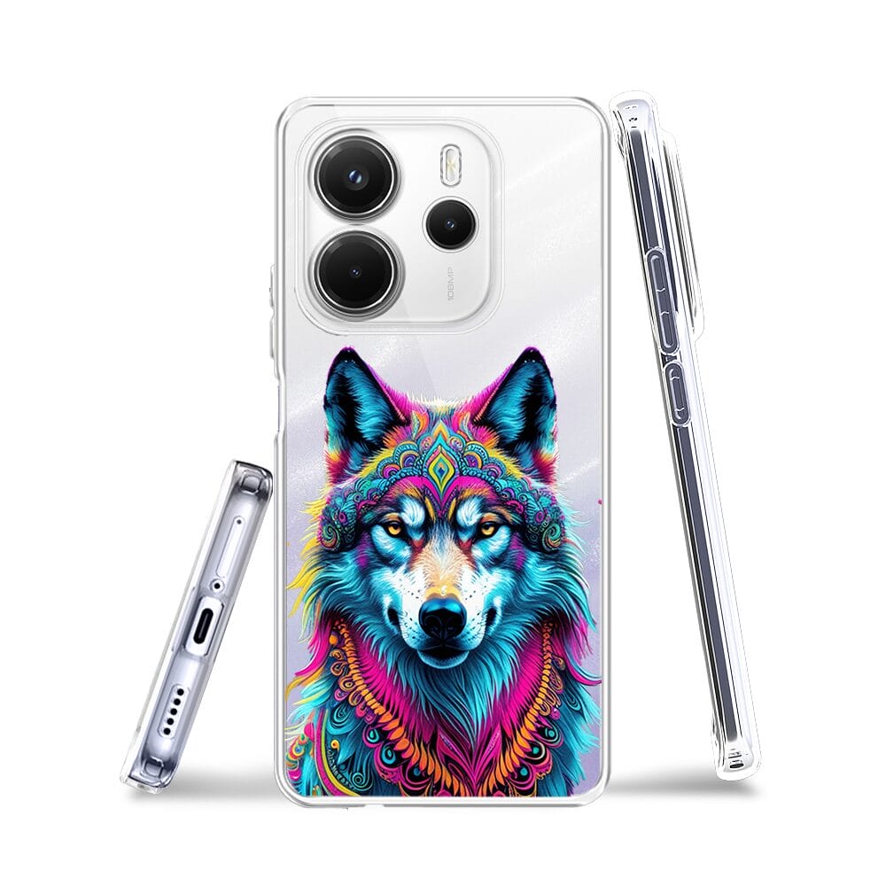Etui do Xiaomi Redmi Note 14 5G przeźroczyste, silikonowe Flexi, Dzika Mandala, Wilk