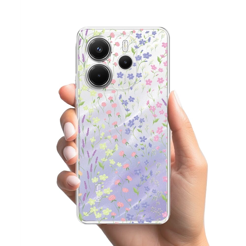 Etui do Xiaomi Redmi Note 14 5G przeźroczyste, silikonowe Flexi, kwiaty polne
