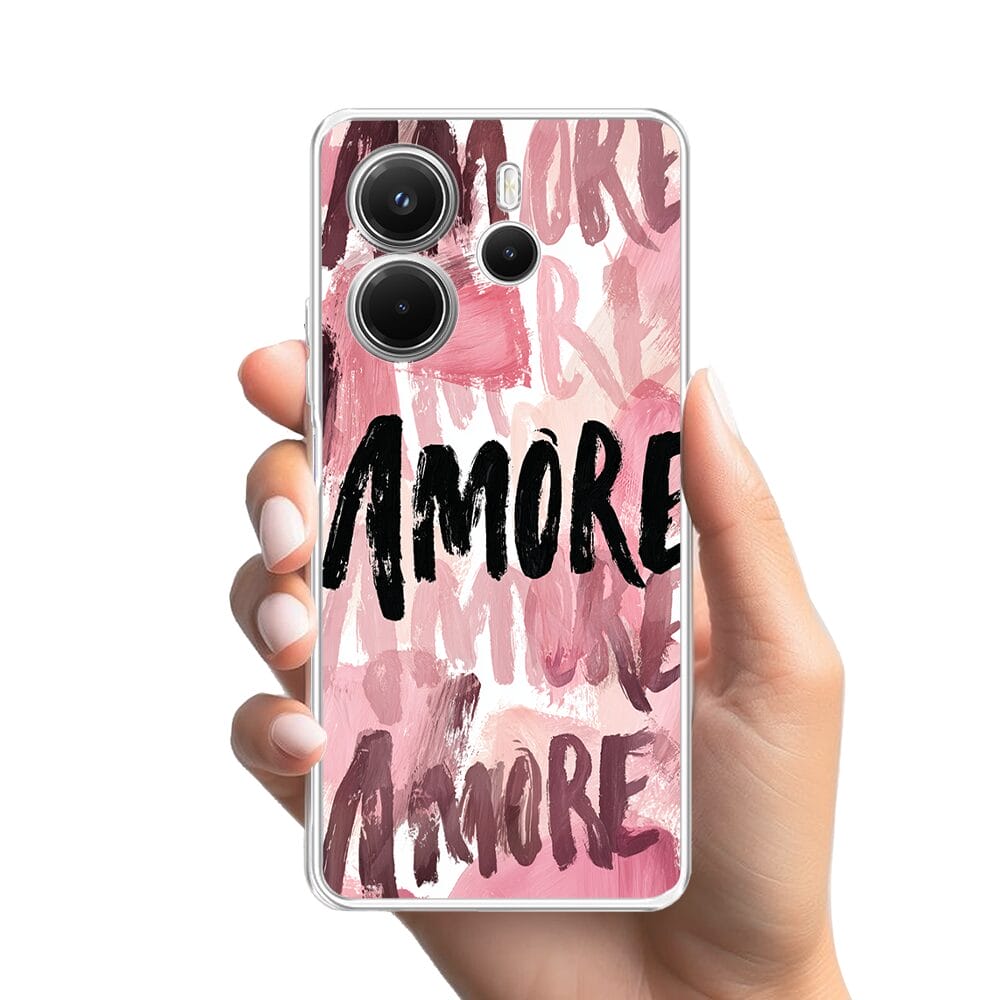 Etui do Xiaomi Redmi Note 14 5G przeźroczyste, silikonowe Flexi, Positive Vibes, Amore Amore