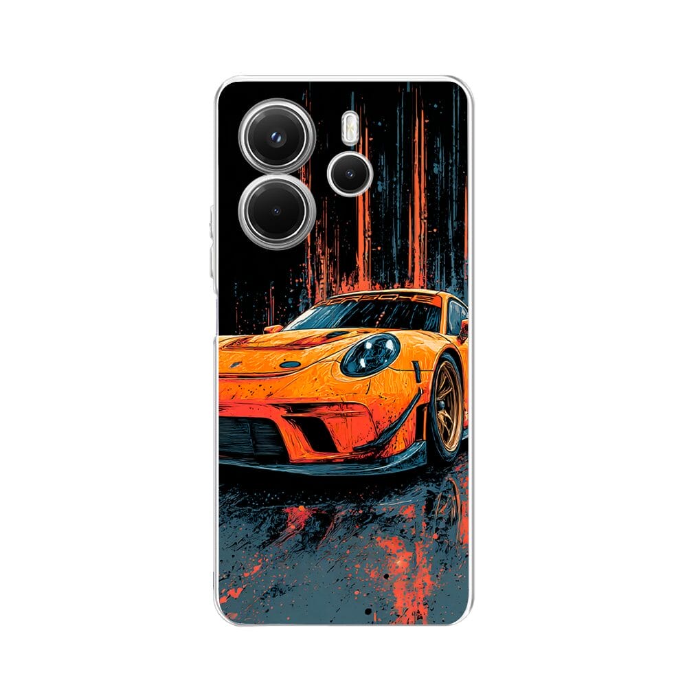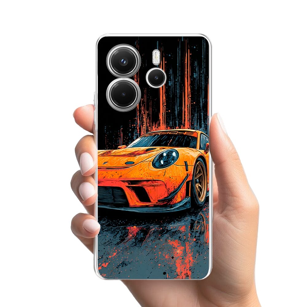 Etui do Xiaomi Redmi Note 14 5G przeźroczyste, silikonowe Flexi, Szybkie Auta, Pomarańczowa 911