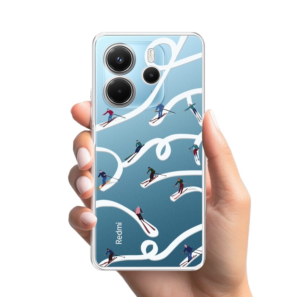 Etui do Xiaomi Redmi Note 14 5G przeźroczyste, silikonowe Flexi, Zimowa magia, Narciarskie wiraże